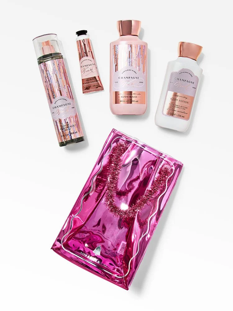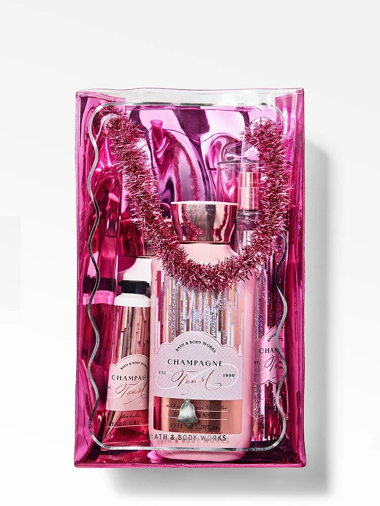 Incluye gel de baño 295ml (10 fl oz), loción corporal 236ml (8 fl oz), splash aromático 236ml (8 fl oz) y crema para manos 29ml (1 fl oz)