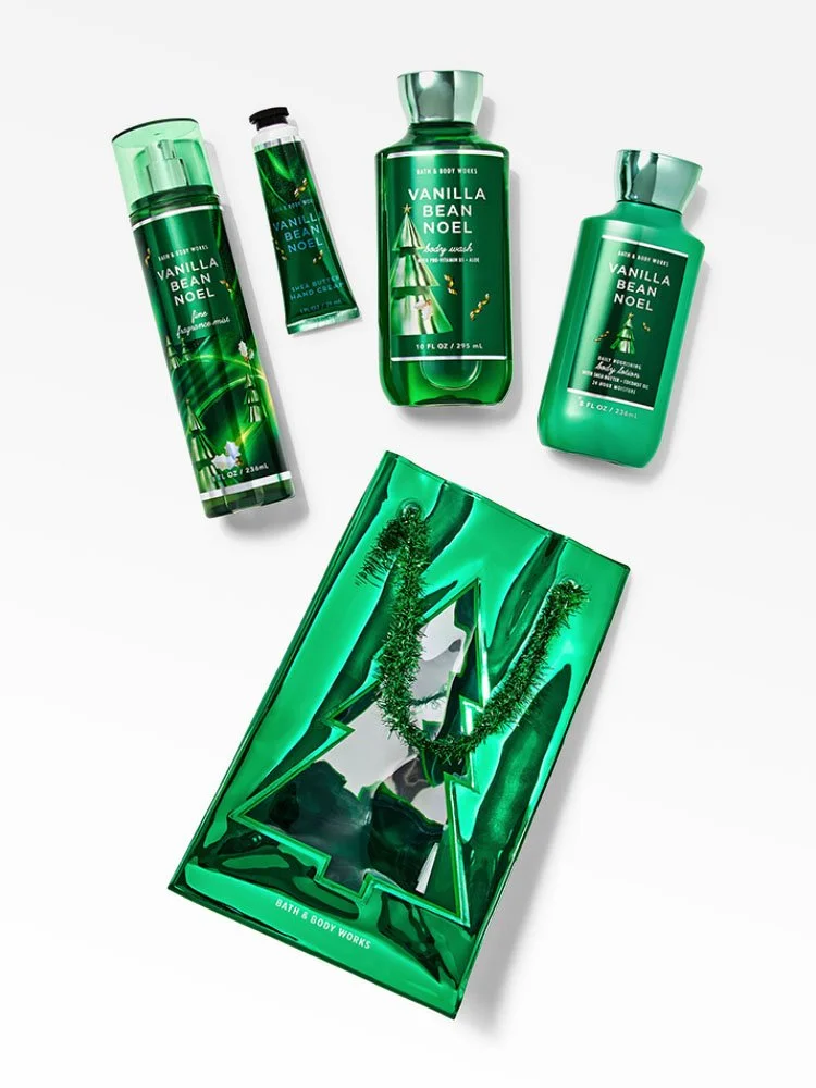 Incluye gel de baño 295ml (10 fl oz), loción corporal 236ml (8 fl oz), splash aromático 236ml (8 fl oz) y crema para manos 29ml (1 fl oz)