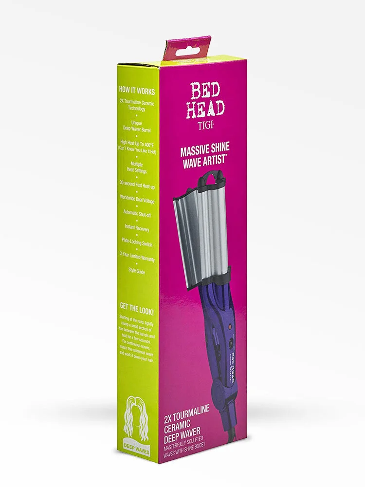 Convierta su peinado en una obra de arte con Bed Head Wave Artist Tourmaline Ceramic Deep Waver. Su diseño de barril profundo agita rápida y fácilmente el cabello con tecnología de cerámica de turmalina que ayuda a reducir el frizz y agregar un brillo masivo. Peina secciones de una pulgada de cabello para obtener ondas de playa de aspecto natural, o secciones más grandes para ondas uniformes y esculpidas.
