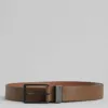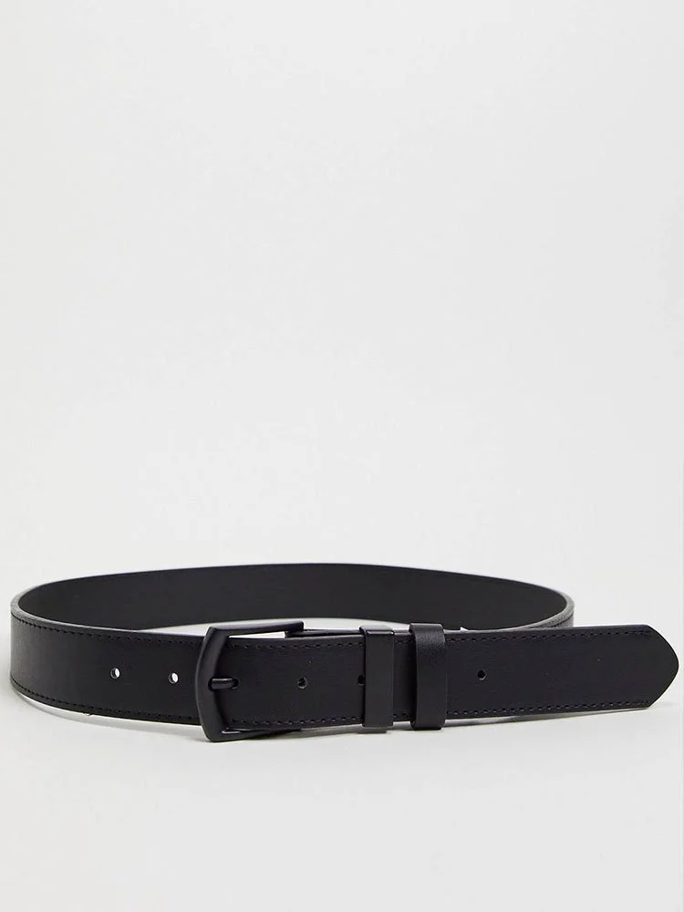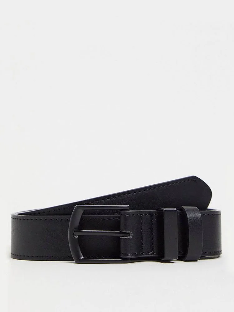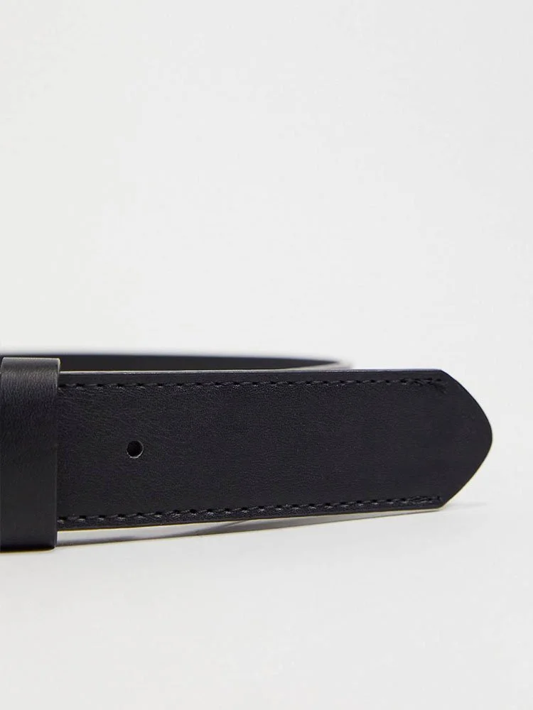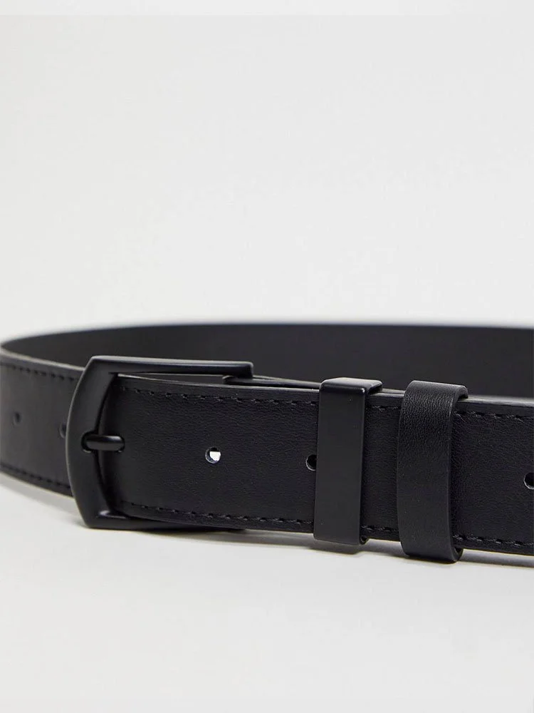 Correa de la marca Bershka en cuero sintético, con largo ajustable, cierre de hebilla y dos trabillas.
