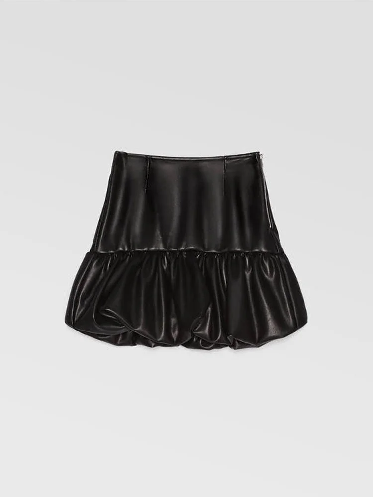 Con su tejido de cuerina, la falda Bershka se adapta a tu forma y permite libertad de movimiento. El largo mini resalta tus piernas y le da a tu look un toque divertido. Los pliegues en forma de caja emanan de la pretina, agregando una hermosa caída y fluidez que se mueve con cada paso.