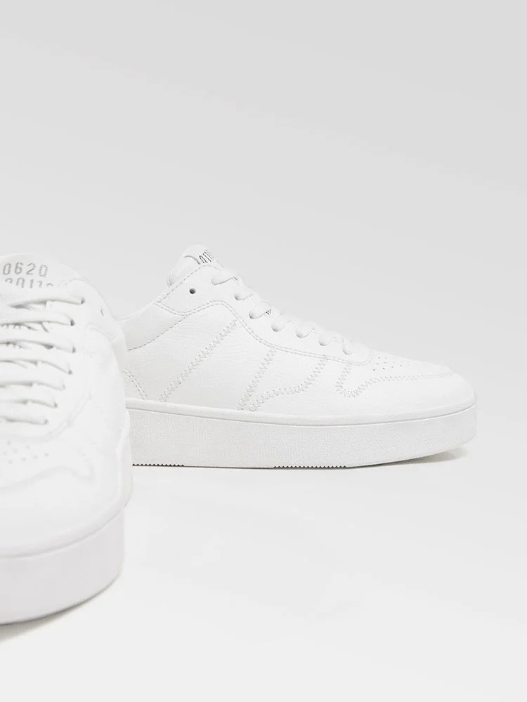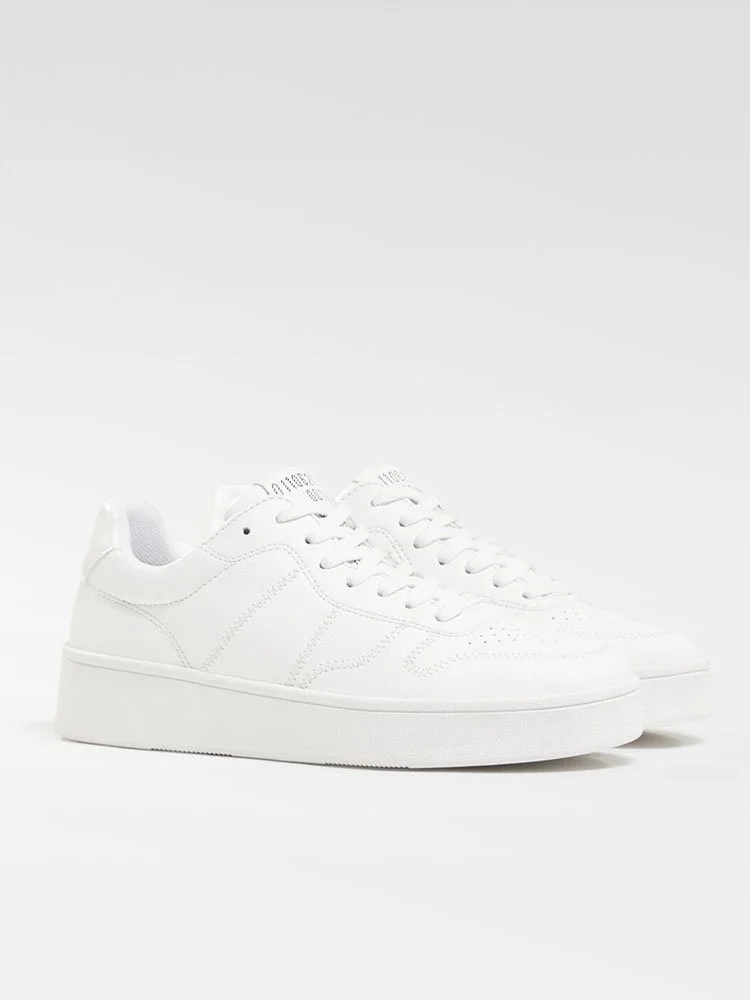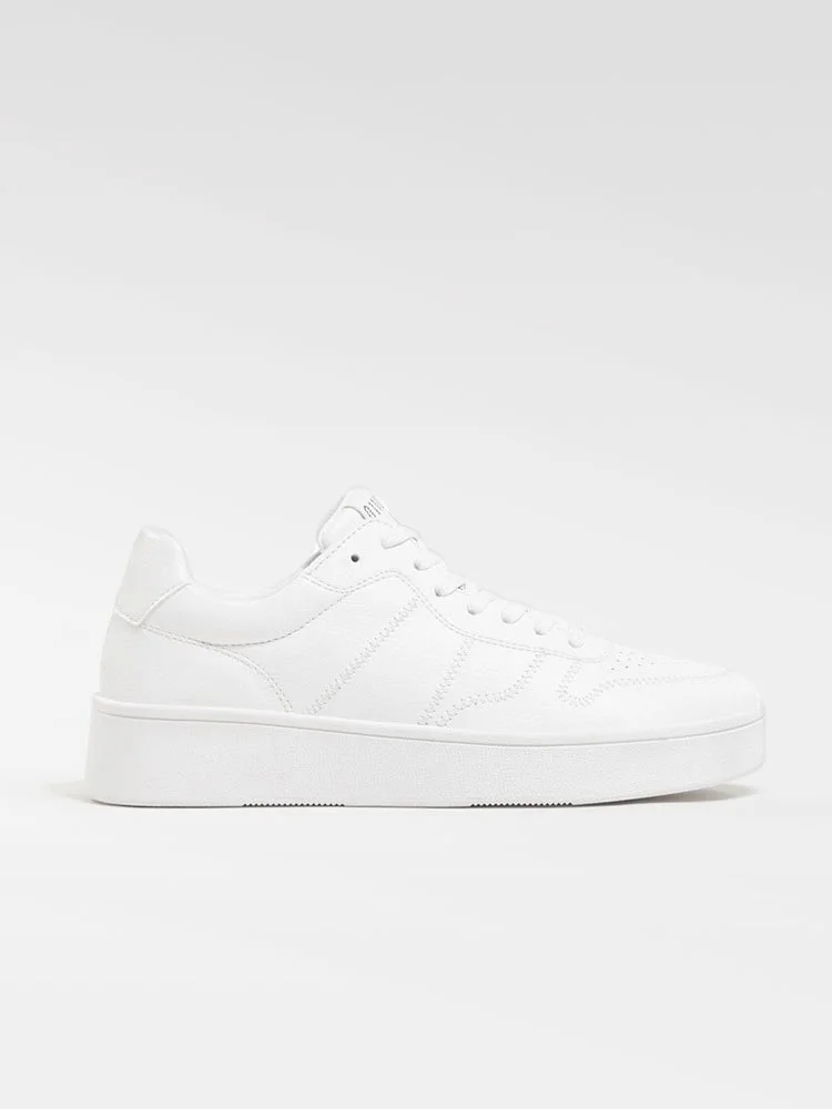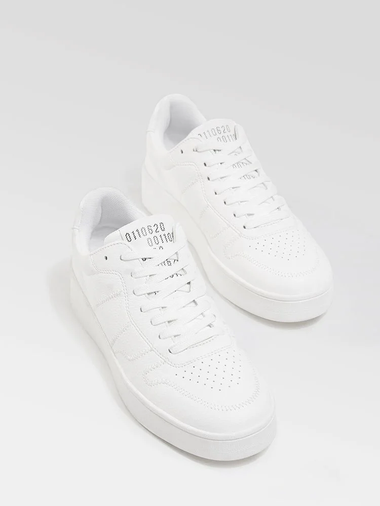 Sneakers de la marca Bershka con diseño de perfil bajo, lengüeta y puños acolchados. Lengüeta estampada, cierre con cordones y punta perforada. Suela de goma duradera y texturizada.