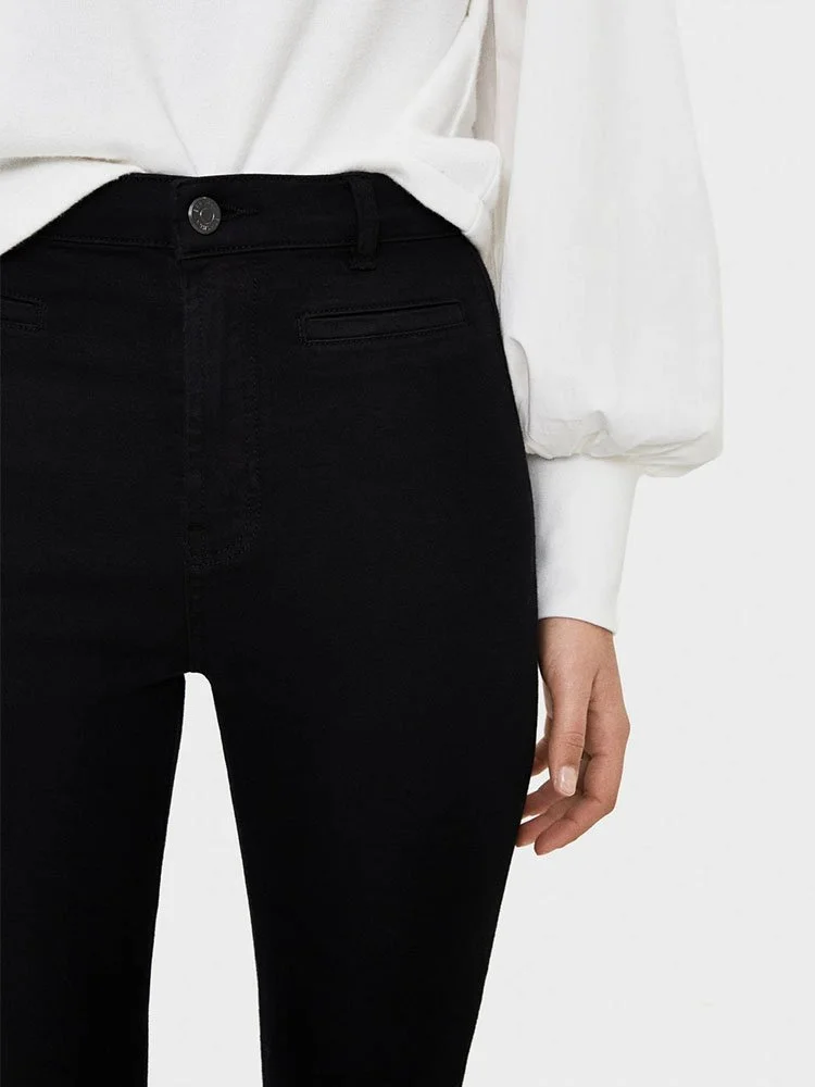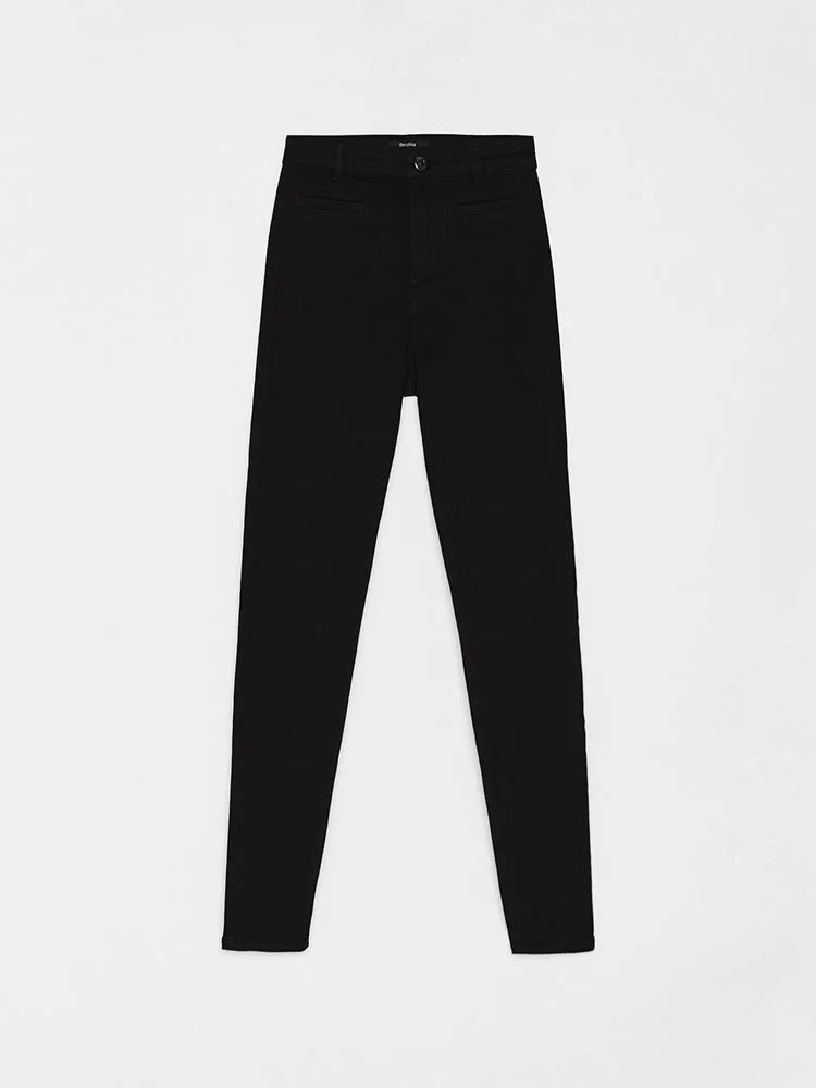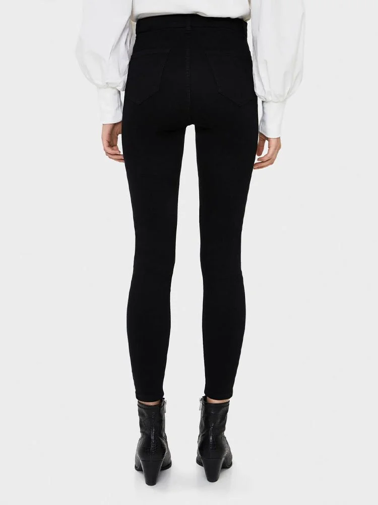 Muestra tus curvas con estos jeans Bershka súper adelgazantes. La pierna súper delgada estiliza tu figura, mientras que el talle alto crea la ilusión de piernas más largas y delgadas.