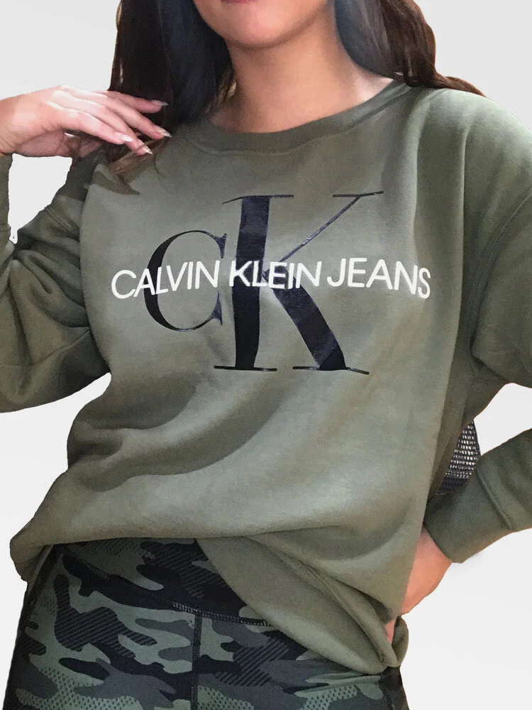 Sweater de algodón, con cuello redondo y monograma de Calvin Klein estampado en el pecho.