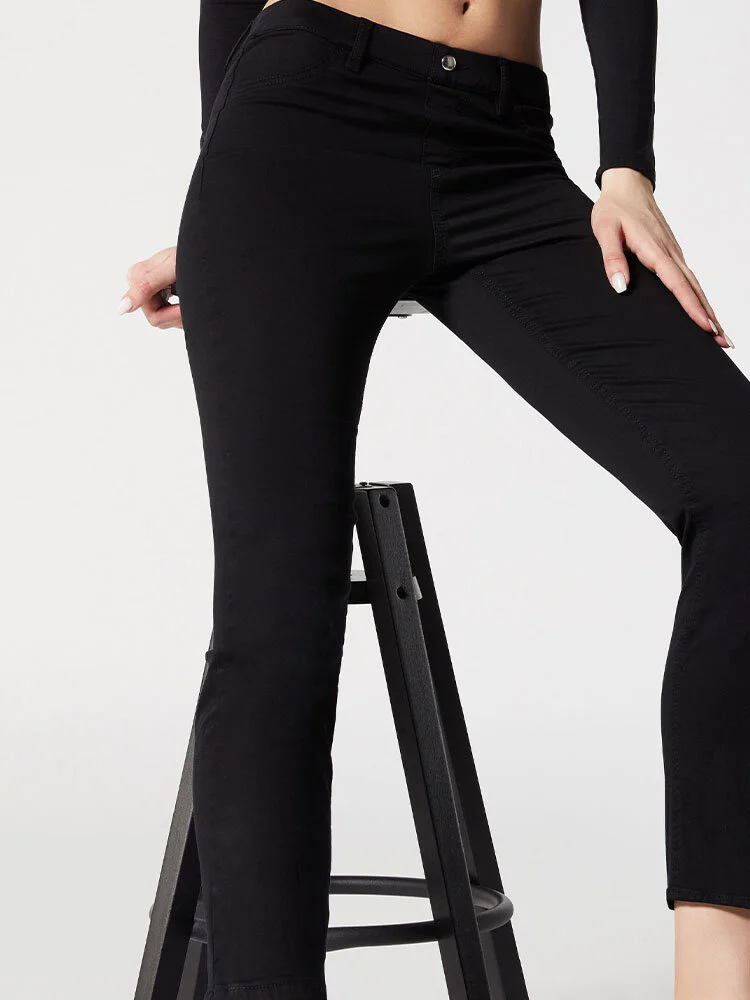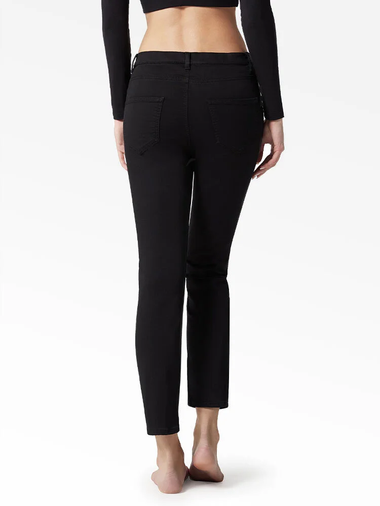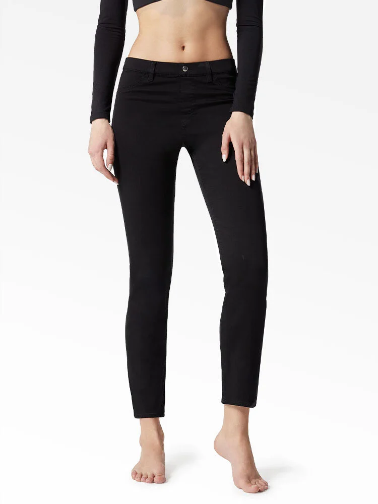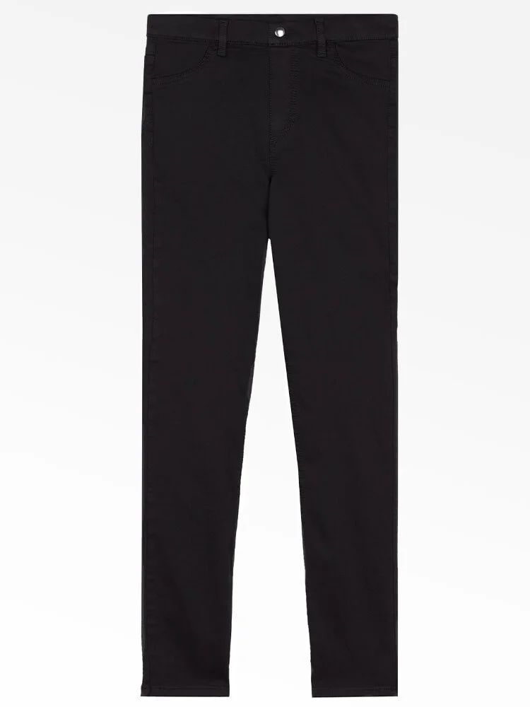 Jeans skinny de tejido increíblemente elástico y cómodo. El botón y la cremallera falsa los convierten en unos auténticos vaqueros, pero con la comodidad de unos leggings. Están confeccionados con tecnología ecológica mediante una fibra obtenida de la fermentación de glucosa y el procesamiento de semillas de maíz. Esto permite que durante el proceso de producción, se disminuya el consumo de energía y las emisiones de CO2.