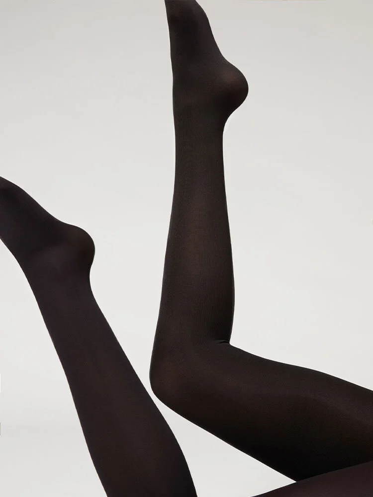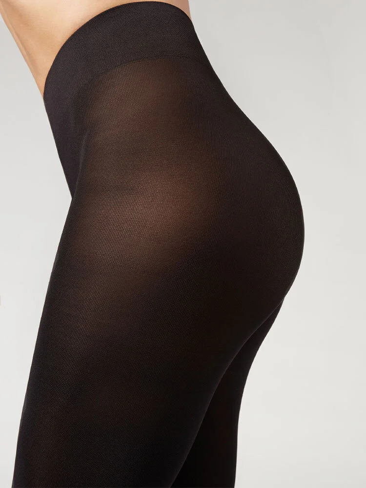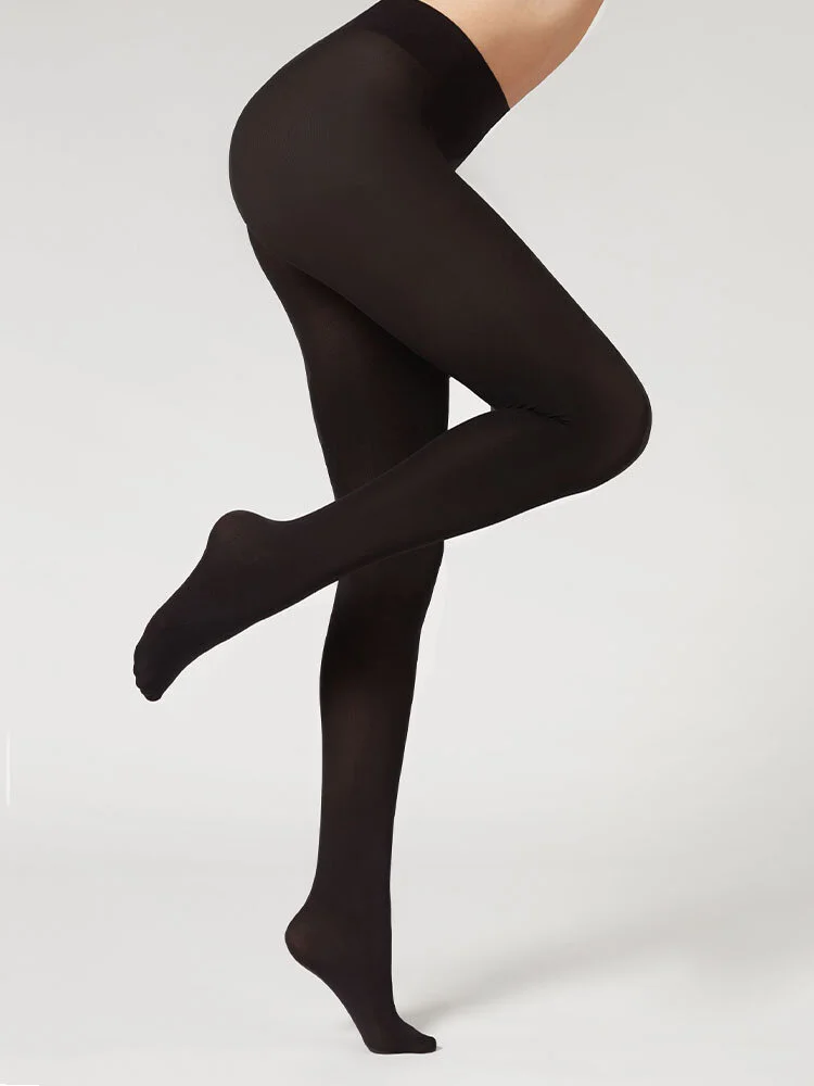 Medias de mujer súper opacas de 100 deniers con suave microfibra, cinturilla de confort total y fuelle de algodón.