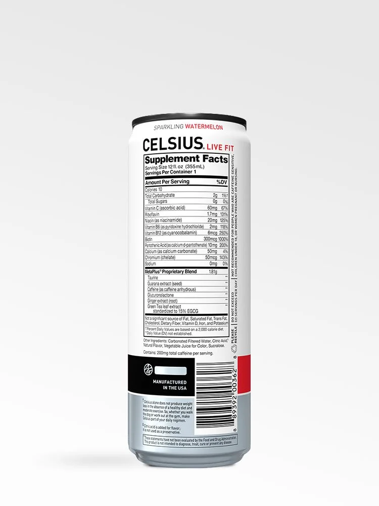 Bebida energética saludable. La fórmula de Celsius incluye té verde con EGCG, jengibre y guaraná, por lo que actúa como termogénico, lo que hace que ocurra un proceso en tu cuerpo que contribuye a darle un boost a tu metabolismo.