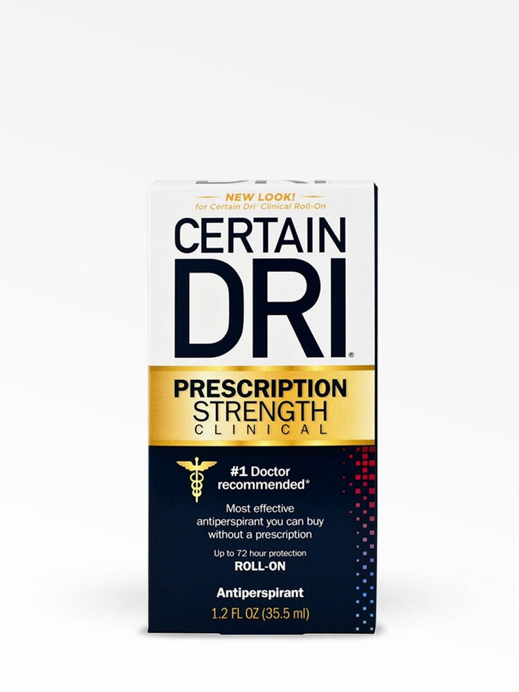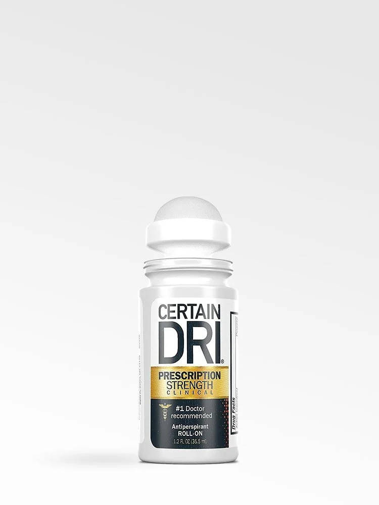 Certain Dri funciona para personas con sudoración excesiva. Cierto Dri ofrece protección para ayudar a controlar la sudoración excesiva. CERTAIN DRI Prescription Strength antitranspirante contienen 12% de cloruro de aluminio y es uno de los antitranspirantes más fuertes y efectivos que puedes comprar sin receta. Otros antitranspirantes pueden tener complejos de aluminio en porcentajes más altos, pero no son lo mismo.