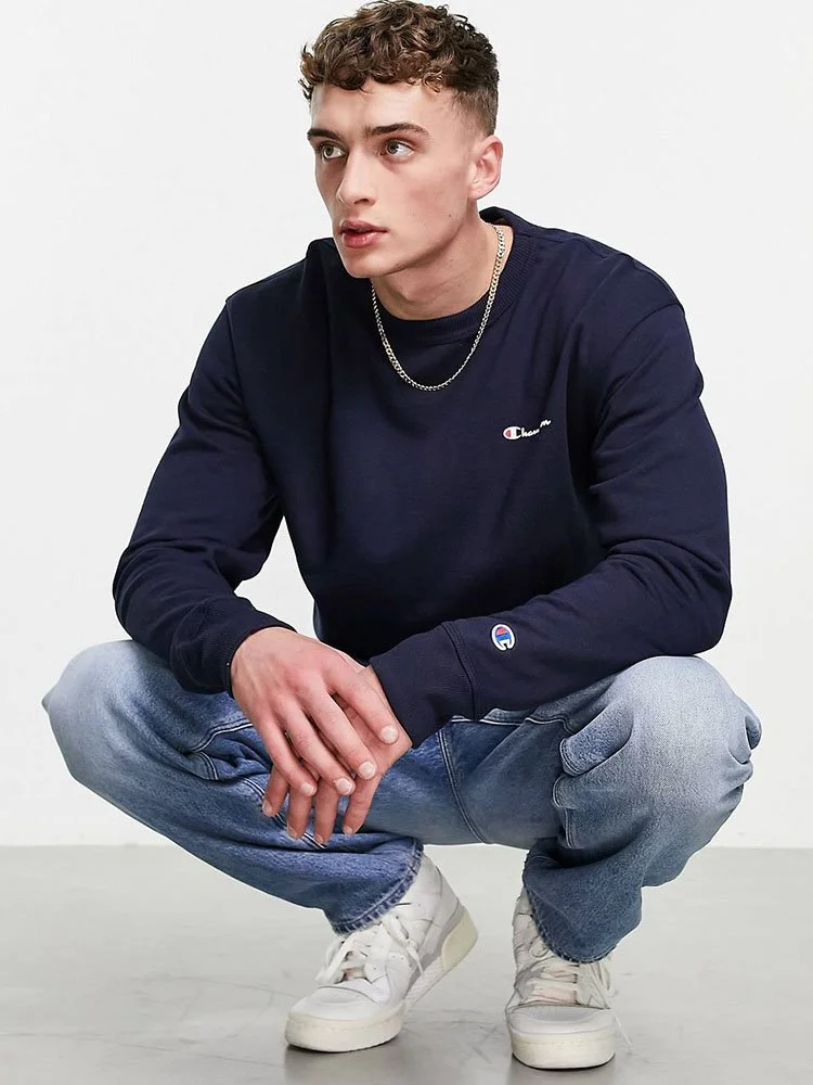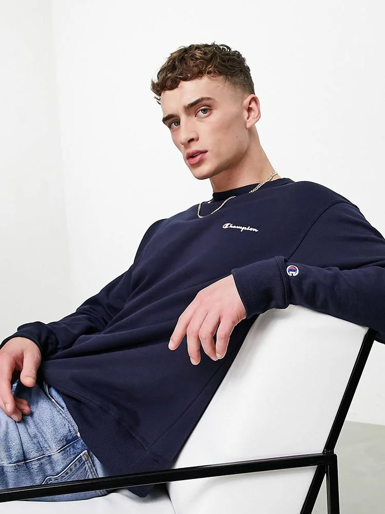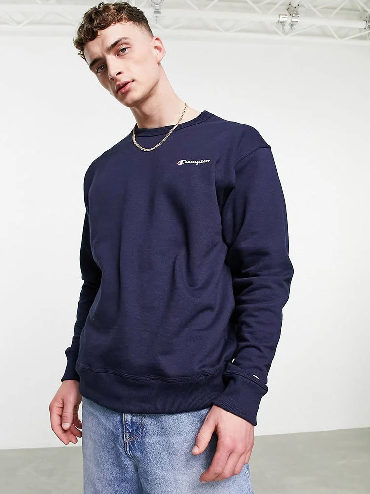 Sweater de la marca Champion con aspecto relajado, logo estampado de la marca, cuello redondo y ribete acanalado.
