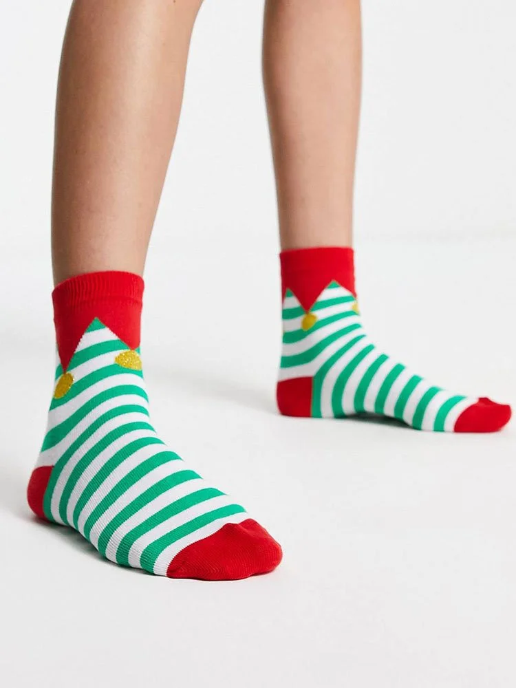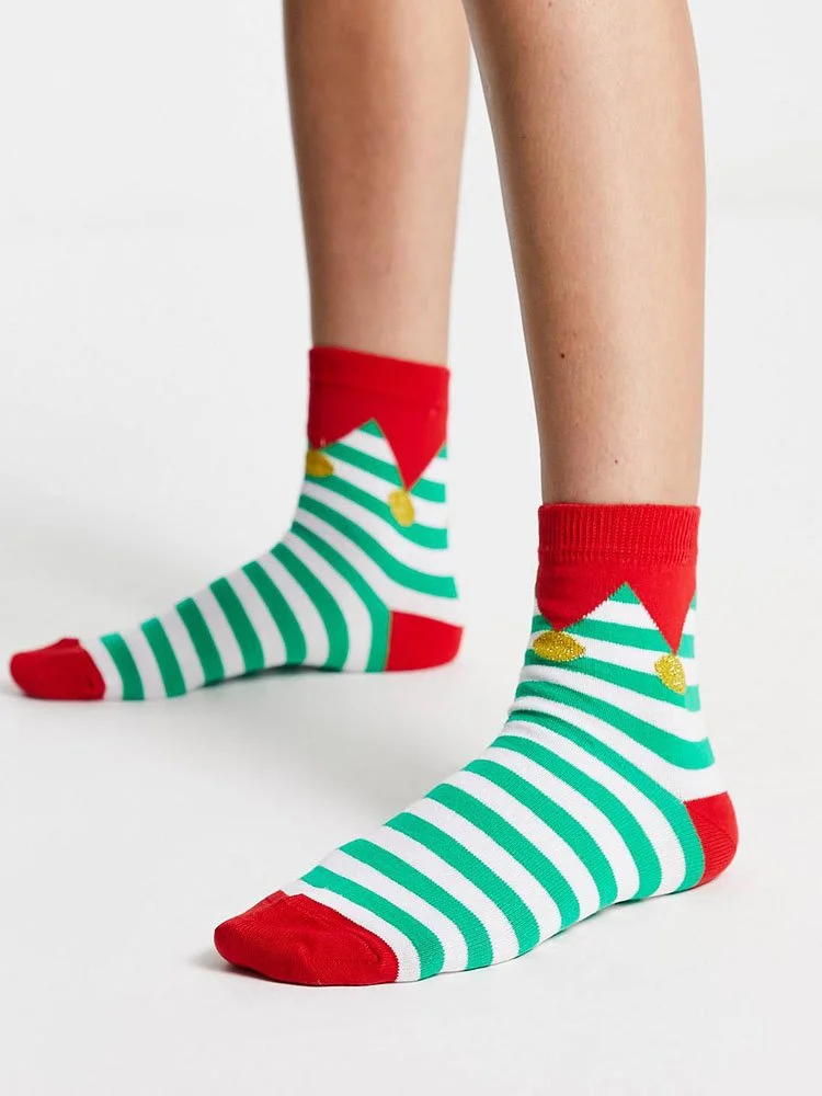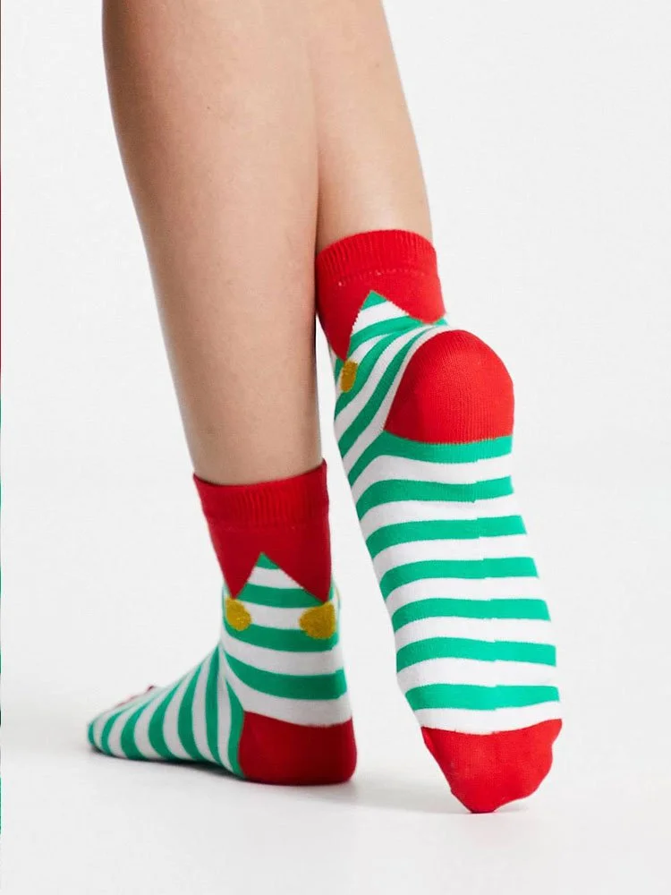 Medias con diseño de elfo, puños de canalé y corte medio.