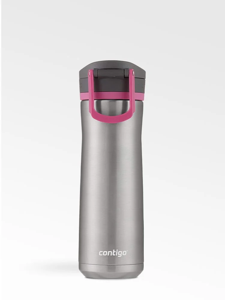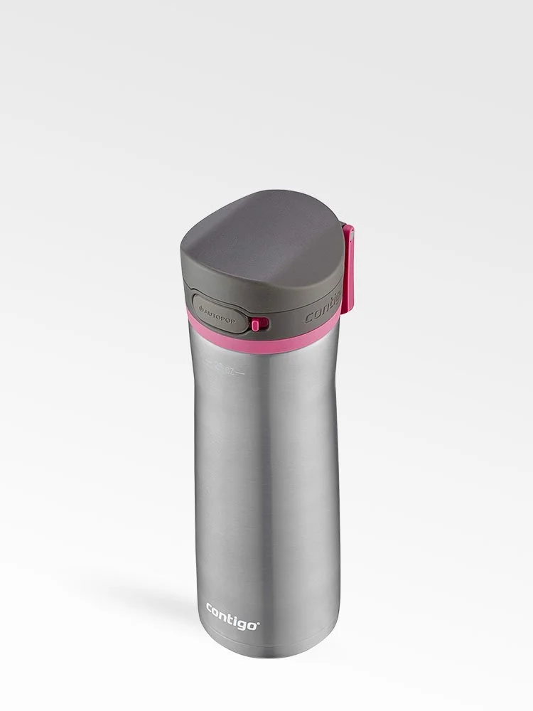 Sencillo haga clic en su tapa, abra y beba para obtener una mejor hidratación. La botella de agua de acero inoxidable AUTOPOP cuenta con una boquilla ancha para beber cómodamente con una sola mano entre todas las tareas de su lista de tareas pendientes. Ya sea que esté haciendo ejercicio o trabajando en su escritorio, el cuerpo de acero inoxidable de doble pared con aislamiento al vacío mantiene las bebidas frías durante 24 horas. Cuando haya terminado de beber, vuelva a colocar la tapa en su lugar para ayudar a proteger la botella de la suciedad y la mugre, luego trabe la tapa para una protección adicional de seguro. El diseño a prueba de fugas significa que no hay derrames en su automóvil, en su escritorio o donde sea que esté. Llevarlo es fácil con el asa integrada. Tanto la tapa como el cuerpo son aptos para lavavajillas en la rejilla superior para facilitar la limpieza. Se adapta a la mayoría de los portavasos.