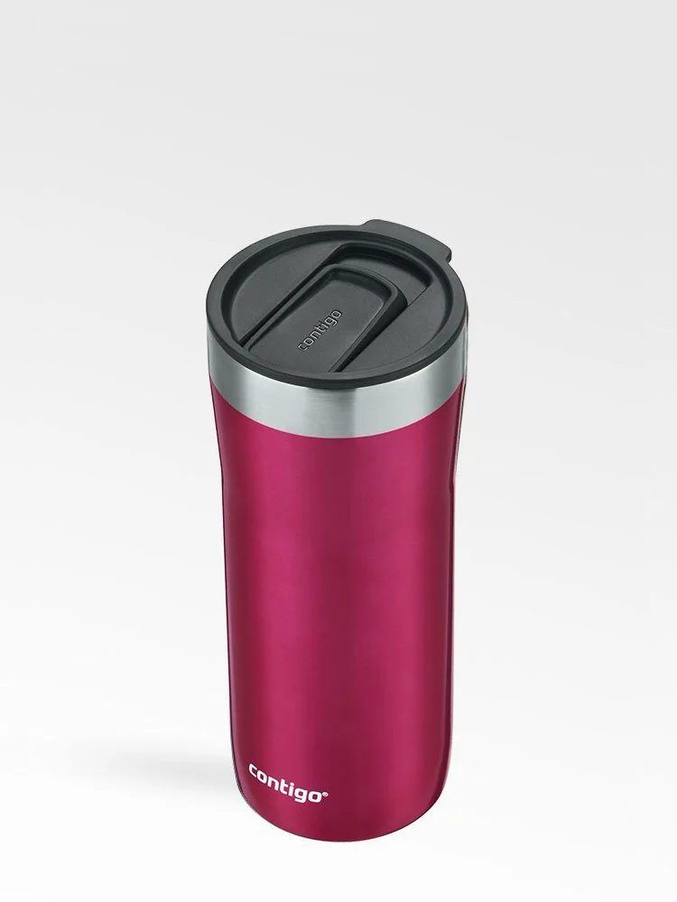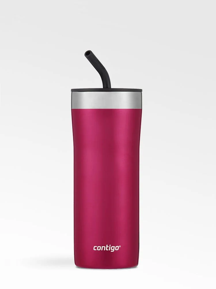Bebe café caliente mientras trabajas desde casa o disfruta de una bebida helada a través del pitillo mientras caminas con el vaso Contigo de acero inoxidable aislado al vacío con pitillo flexible de acero inoxidable y tapa deslizante a prueba de salpicaduras.