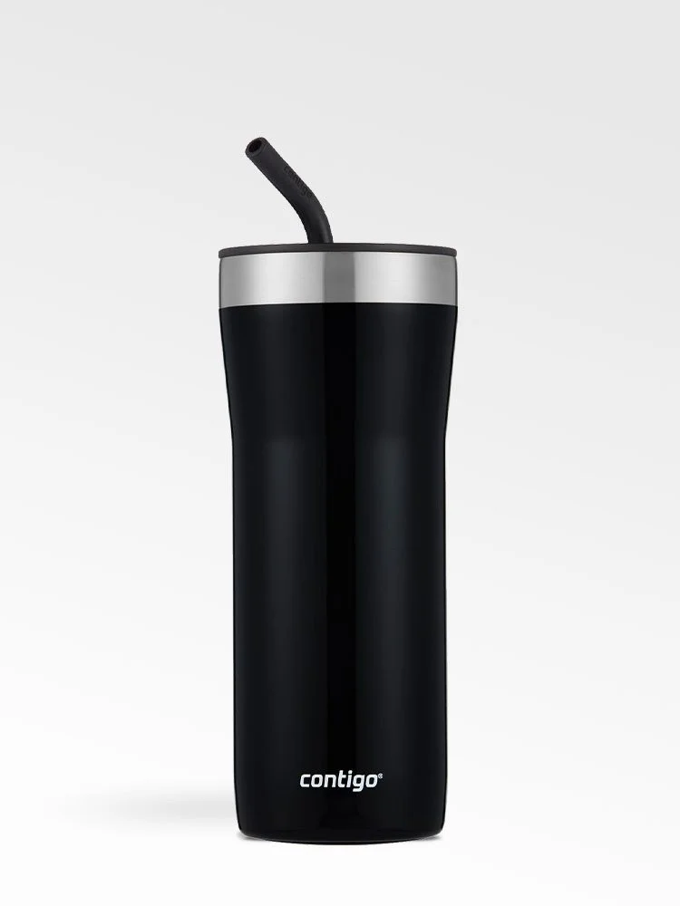 Bebe café caliente mientras trabajas desde casa o disfruta de una bebida fría mientras compartes con tus amigos con el vaso Contigo de acero inoxidable aislado al vacío con pitillo flexible de acero inoxidable y tapa deslizante a prueba de salpicaduras, 32 onzas.