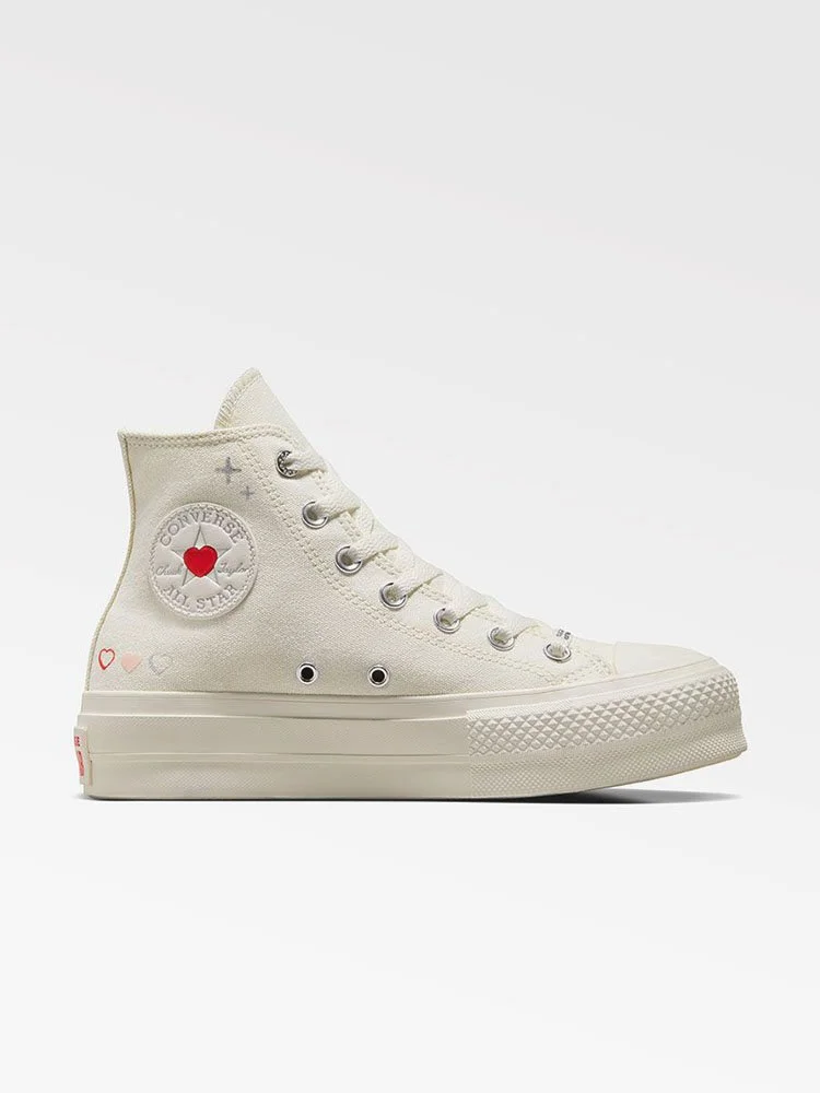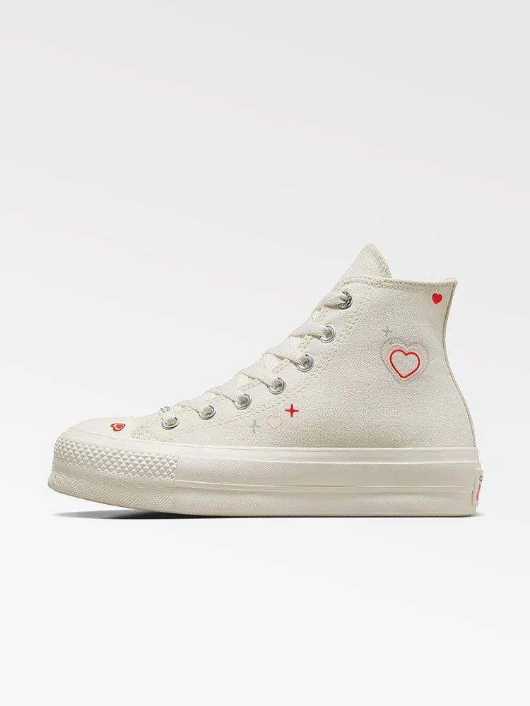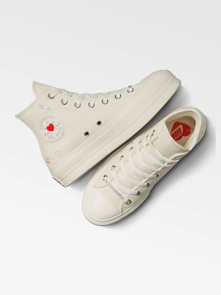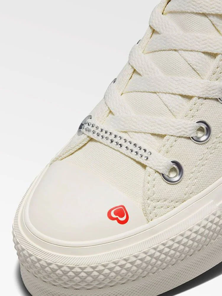 Estas Chucks elevadas tienen pequeños corazones y detalles metálicos que se leen como una carta de amor al Y2K. Un pequeño corazón dentro del parche del tobillo te brinda un estilo destacado que Cupido envidiaría.