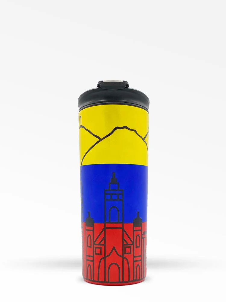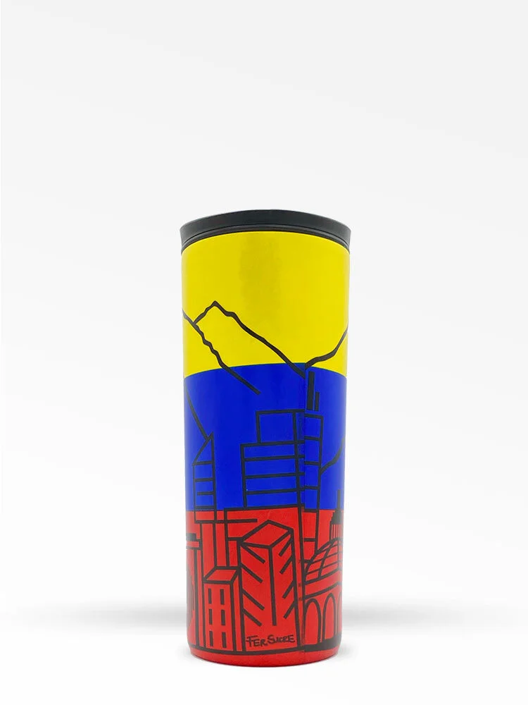 Costablue Venezuela vaso térmico de viaje de acero inoxidable con aislamiento al vacío de 16.0 fl oz con colores de la bandera venezolana y con iconos de caracas.