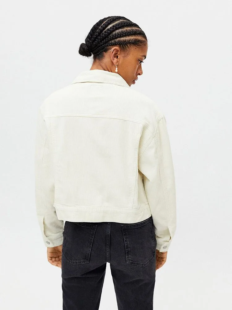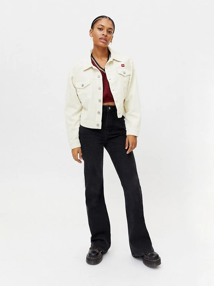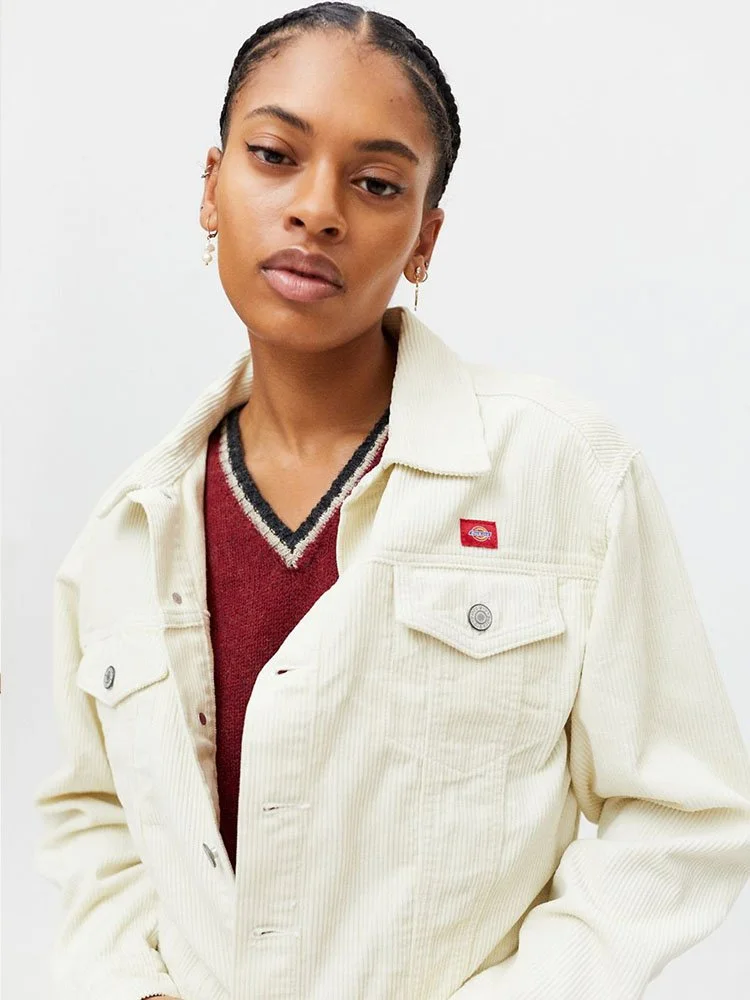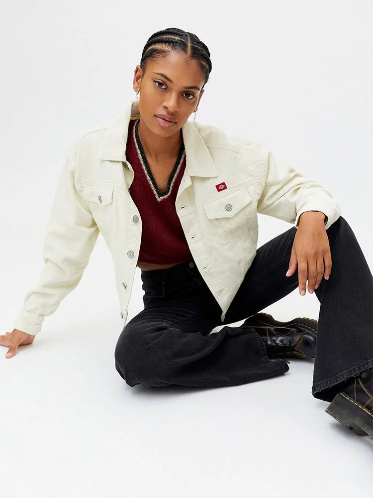 Chaqueta de pana suave de Dickies recortada por encima de la cintura en un ajuste holgado.