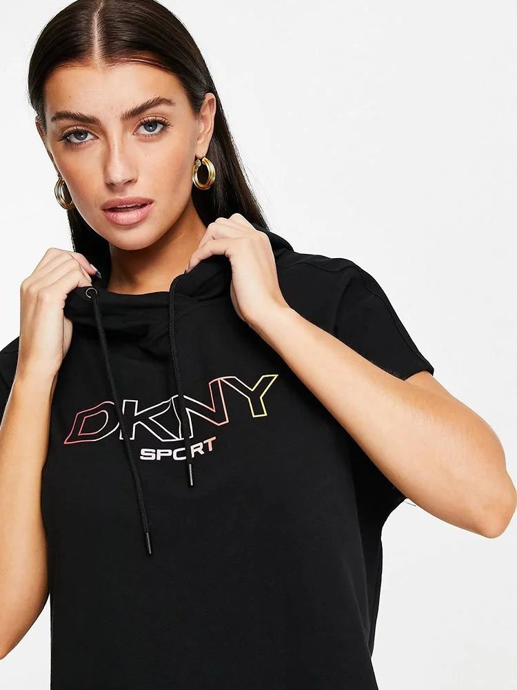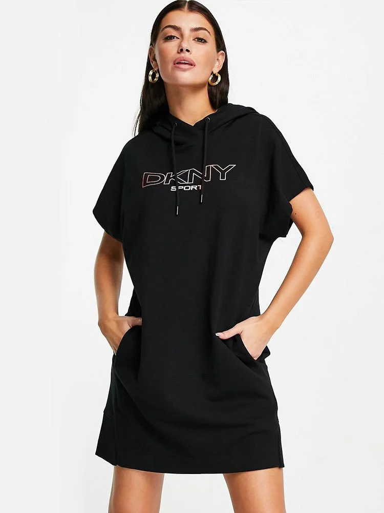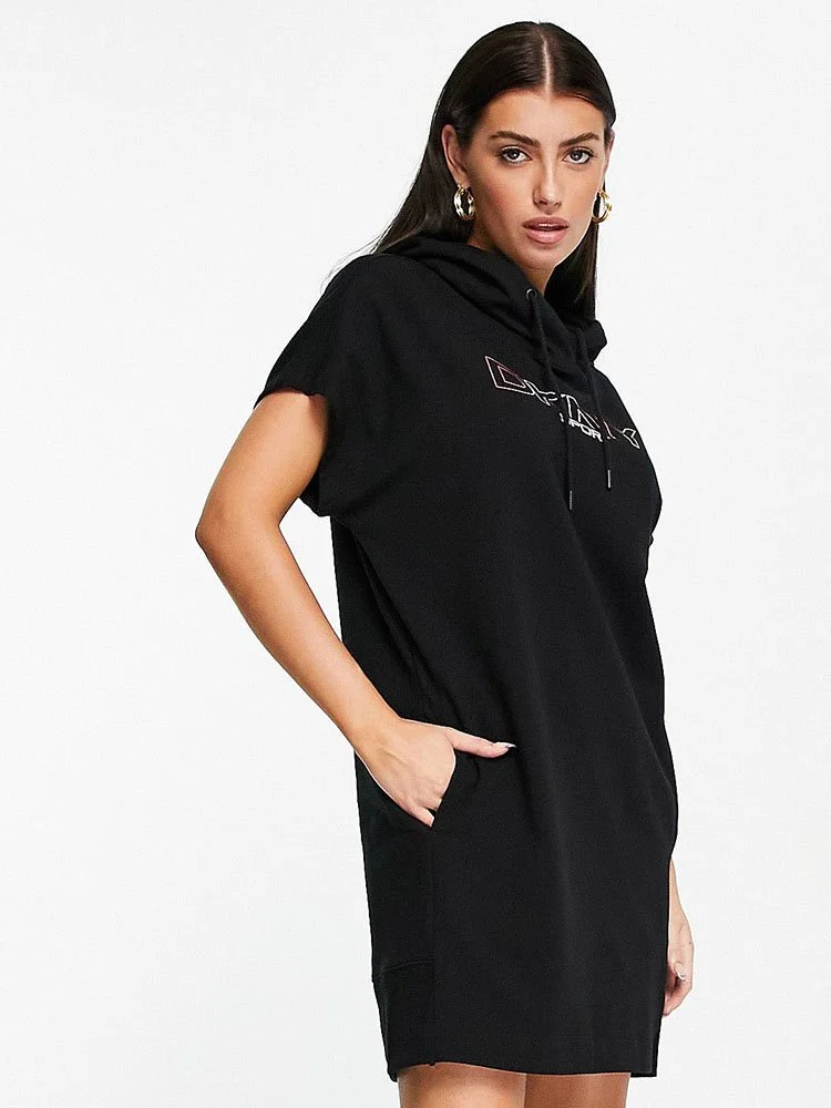 Vestido de capucha con cordón, con ajuste relajado y logotipo estampado en el pecho y bolsillos laterales.