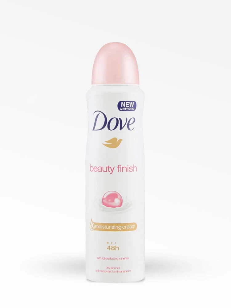 Dove Beauty Finish es un desodorante antitranspirante que te da un efecto perla, con ingredientes conocidos para realzar el tono natural de la piel. Este producto, con ¼ de crema hidratante y vitamina E, nutre tu piel, dejándola sedosa y bonita con un tono uniforme. Su fórmula contiene 0% Alcohol y ofrece 48 horas de protección contra el sudor.