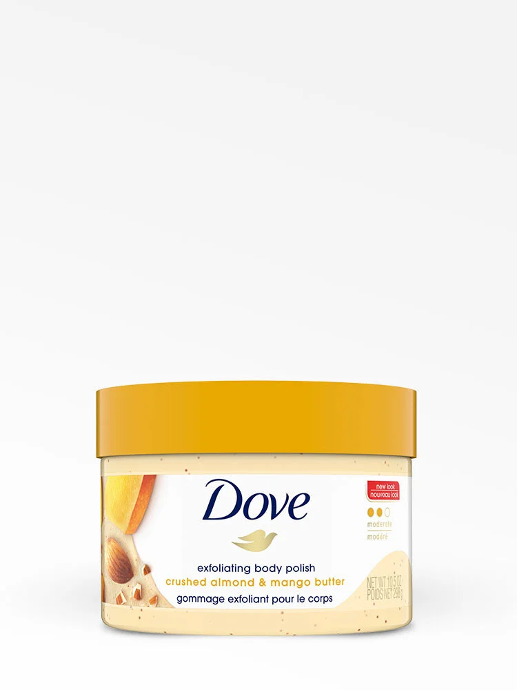 Mientras te brinda un tratamiento con exquisitos aromas de mango y cremosa manteca de almendras, este exfoliante corporal de Dove pule, limpia y nutre tu piel.