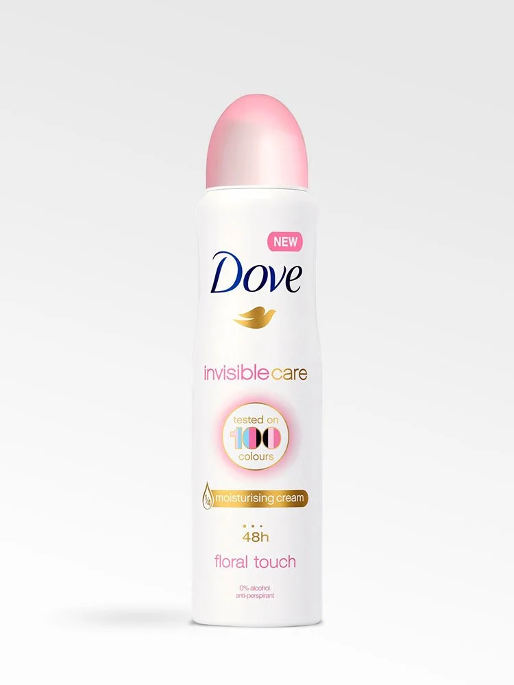 Asegúrate una protección contra la sudoración durante todo el día que no deja manchas en la ropa. El antitranspirante Dove Invisible Care Floral Touch elimina la sudoración y el olor corporal durante un periodo de 48 horas. Gracias a su cuarta parte de crema hidratante, cuida de la piel de las axilas y la deja suave. Su agradable fragancia floral acariciará tus sentidos.