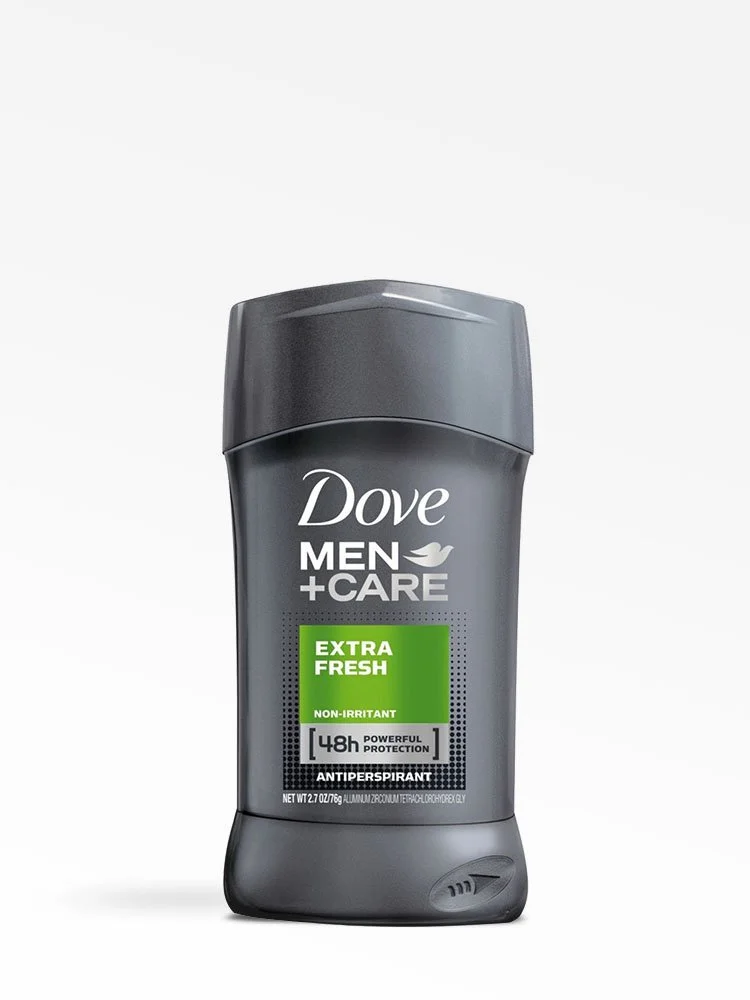 Dove Men+Care Extra Fresh Deodorant ofrece 48 horas de protección contra las sudoraciones y el mal olor mientras previene la irritación de la piel.