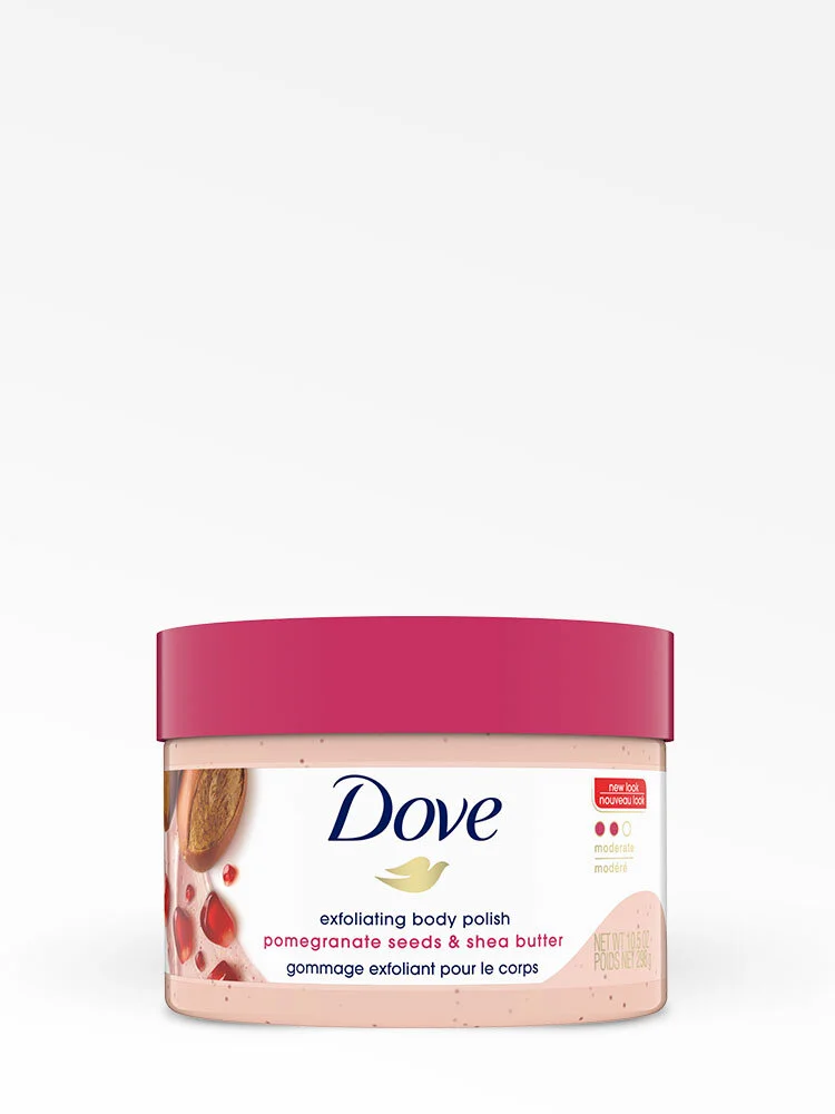 ¿Buscas un exfoliante corporal que pula y nutra? Dove Exfoliating Pomegranate Body Polish deja tu piel suave y sedosa después de cada ducha.