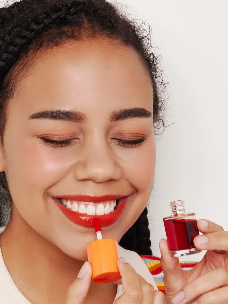 La nueva versión de Etude House Dear Darling Lip Tint le da a los labios un tinte sexy y dulce disponible en tonos cereza, naranja y fresa, lo que los hace lucir completamente besables y suaves.