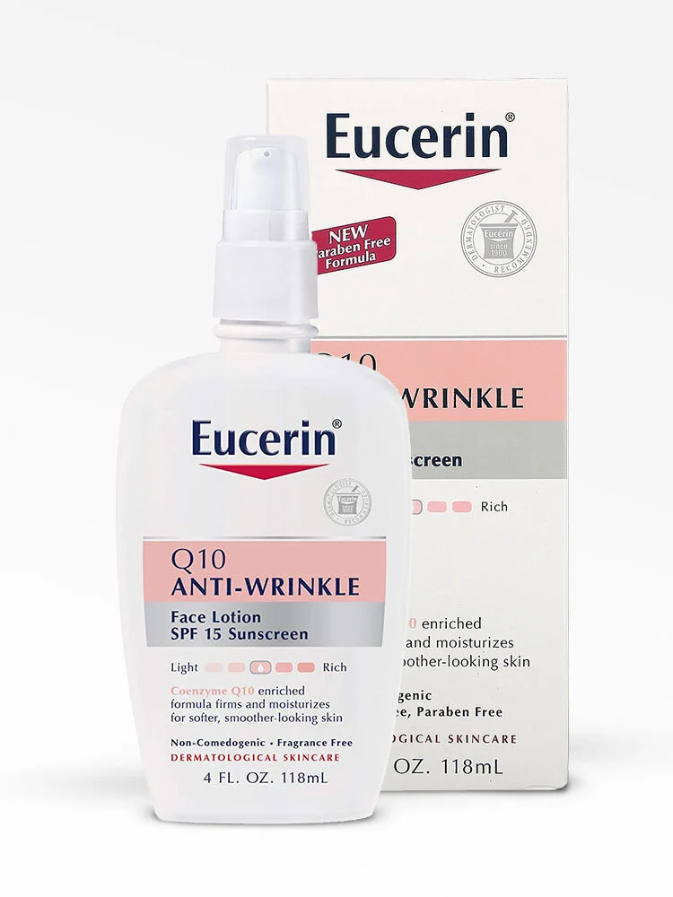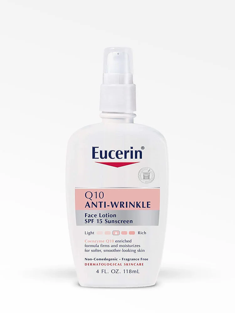 El Loción Anti-Arrugas con protector solar SPF 15 de Eucerin es una manera suave para reducir la apariencia de las arrugas.