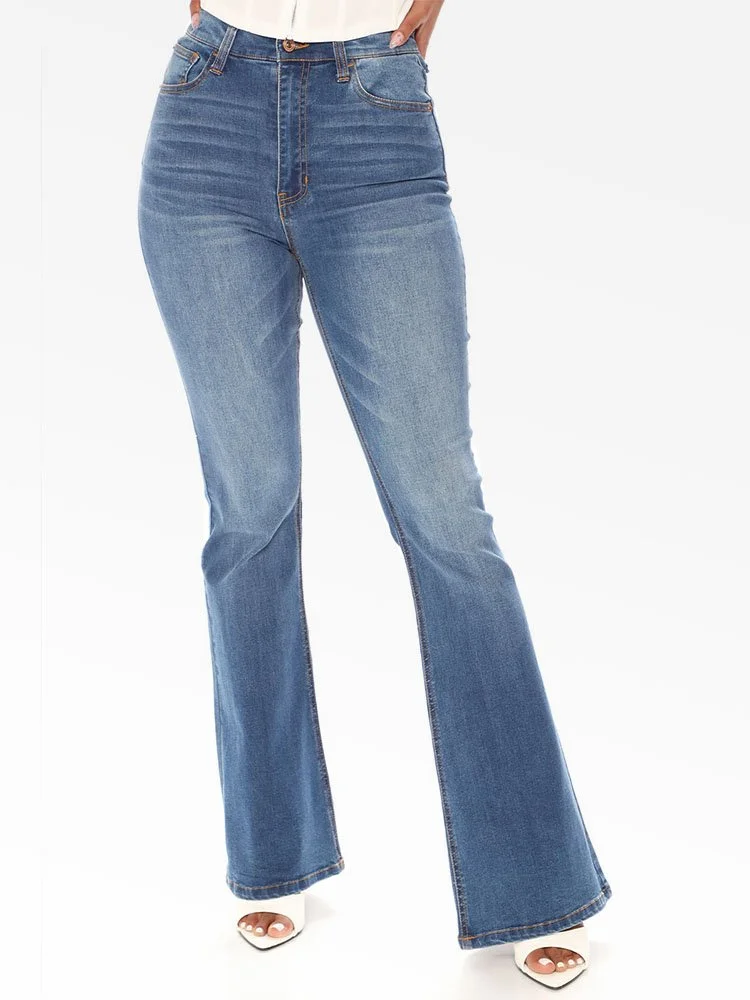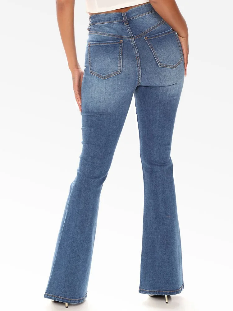 Jeans acampanados con curvas, confeccionados en denim elástico de compresión y 5 bolsillos.