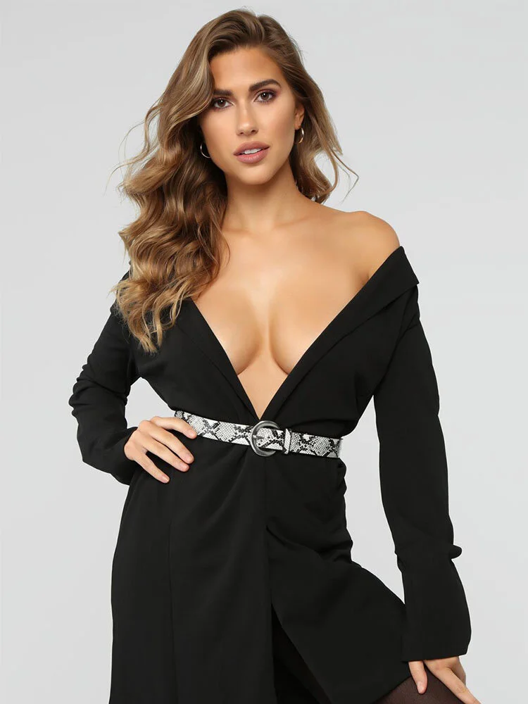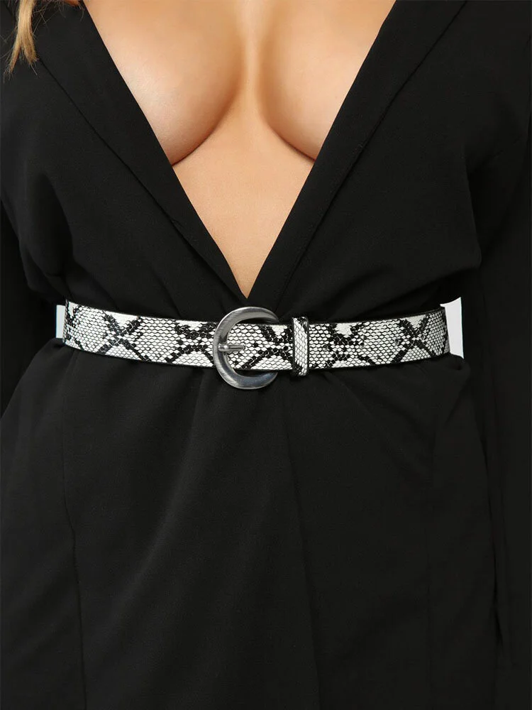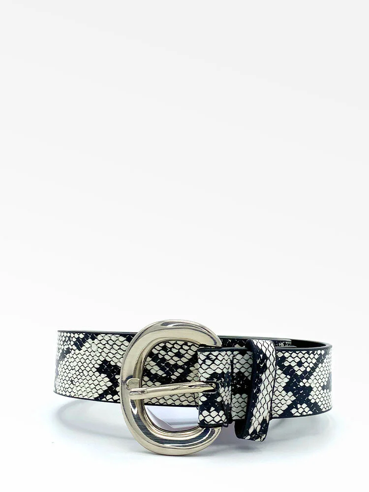 Cinturón ajustado en blanco y negro de piel sintética con estampado de serpiente.