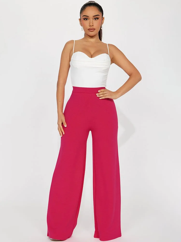 Pantalón elegante y sexy, sin cordones, de talle alto, pierna ancha y cintura elástica.