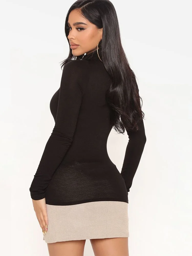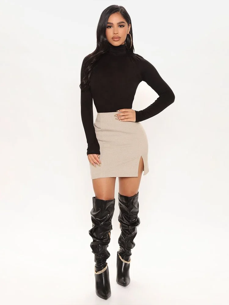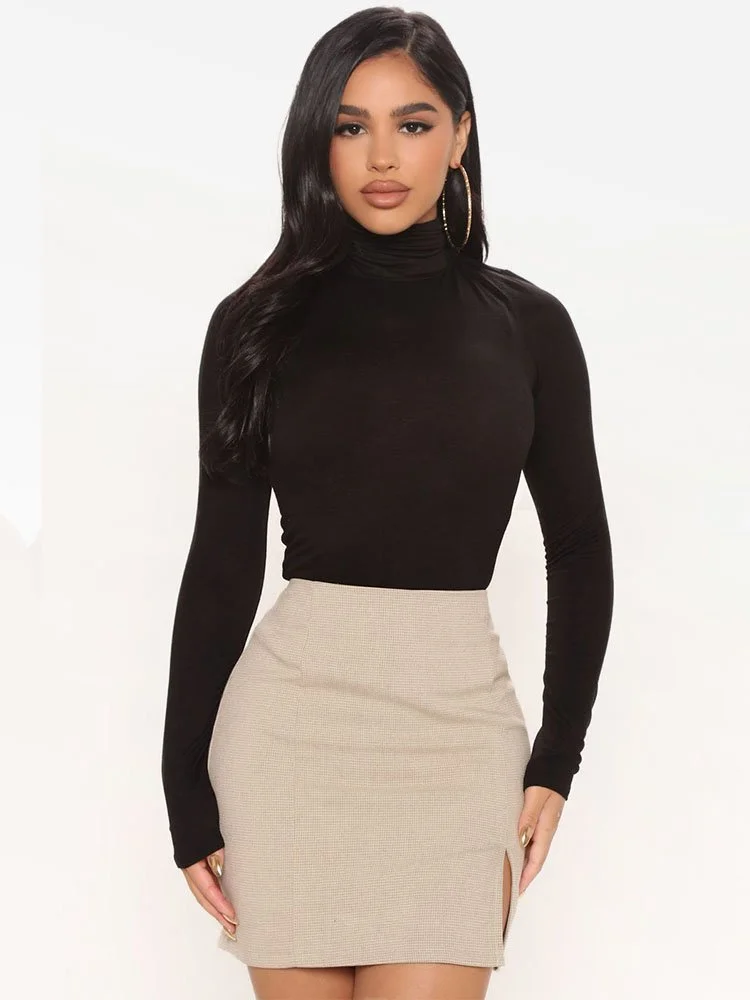 Sweater de manga larga en tejido elástico con cuello alto.