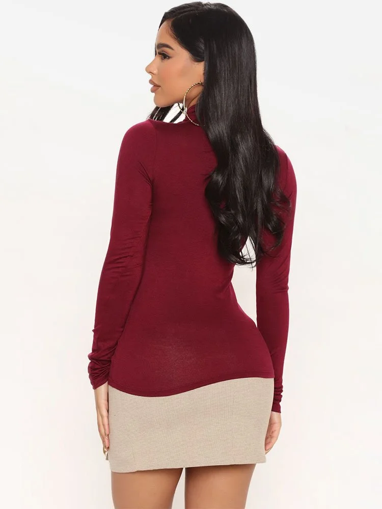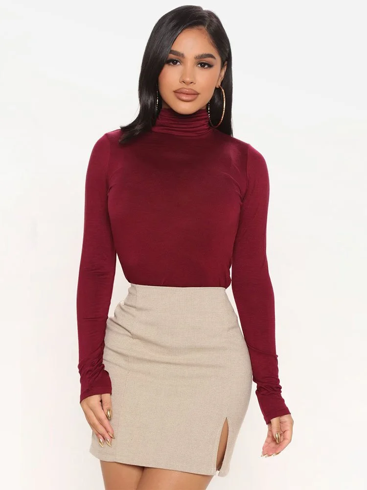 Sweater de manga larga en tejido elástico con cuello alto.