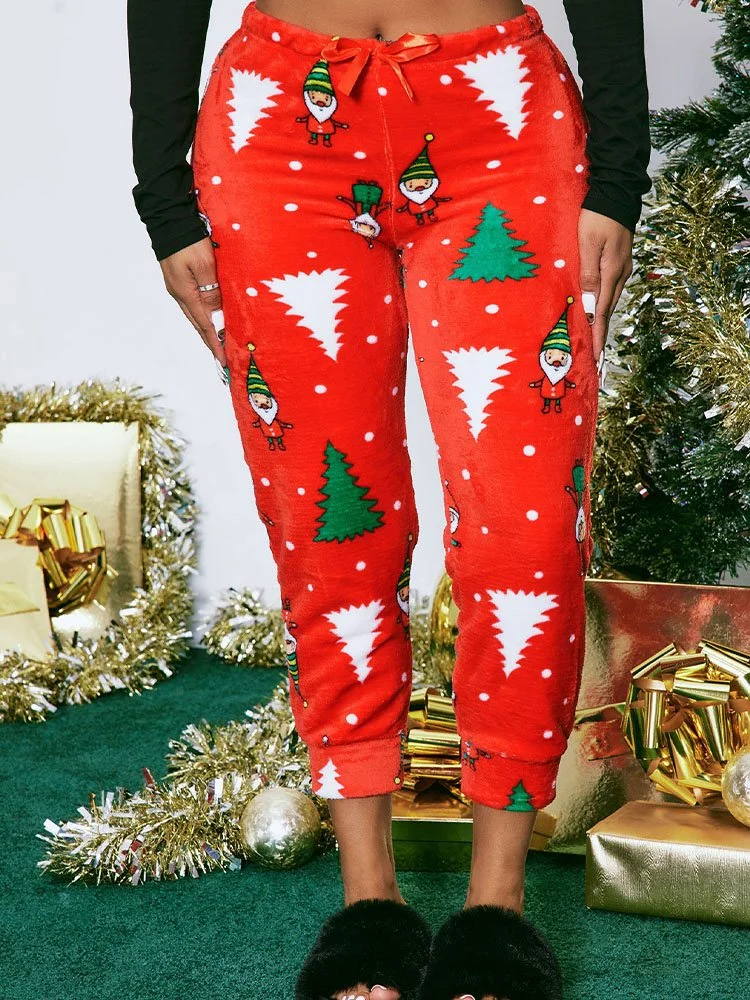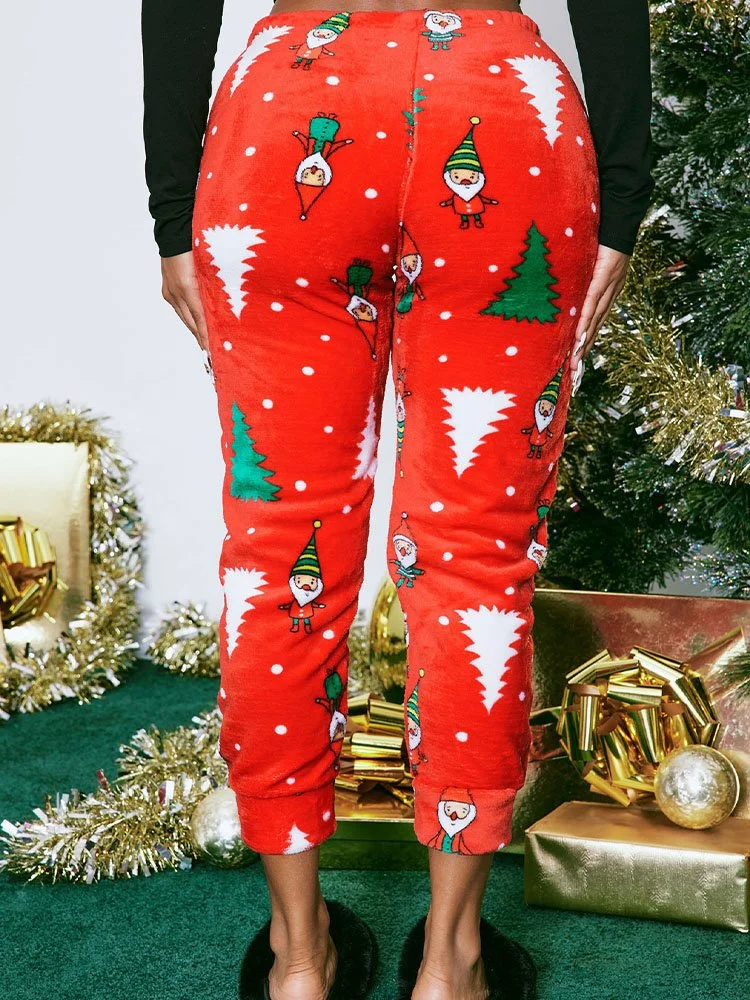 ¡Sumérgete en el espíritu navideño con los deliciosamente festivos Fashion Nova Gnome For The Holidays Plush Pijama Joggers! Estos joggers de felpa súper suaves cuentan con un divertido estampado integral de árboles de Navidad y gnomos que te hará sonreír.