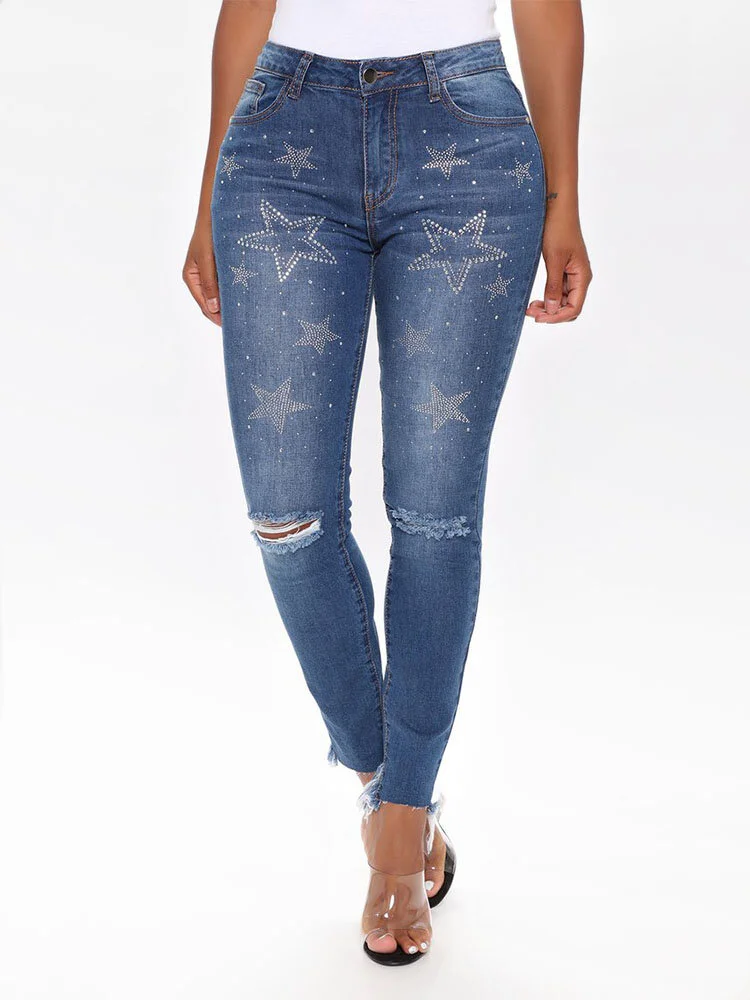 Skinny Jeans con adornos. Patrones de estrellas de diamantes de imitación. De estiramiento moderado.