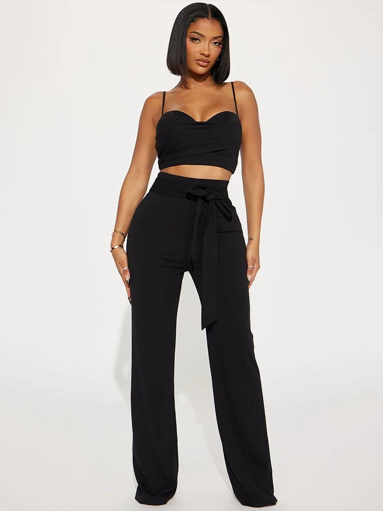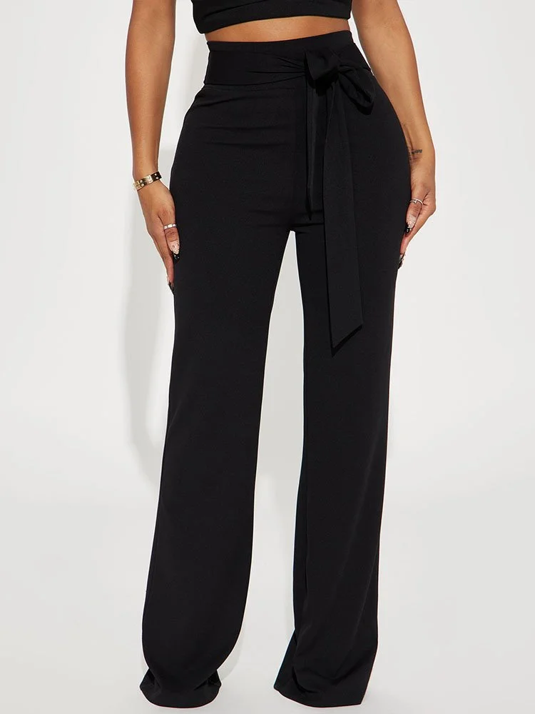 Elegante pantalón de talle alto con pernera de bota y cinturón.