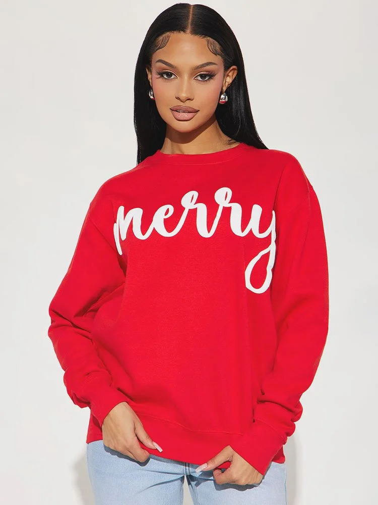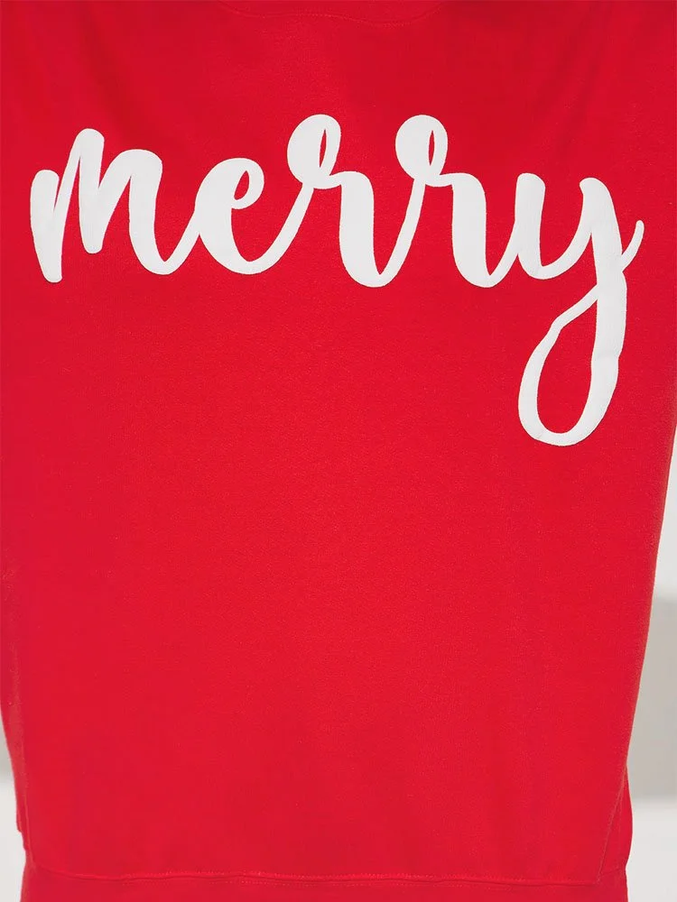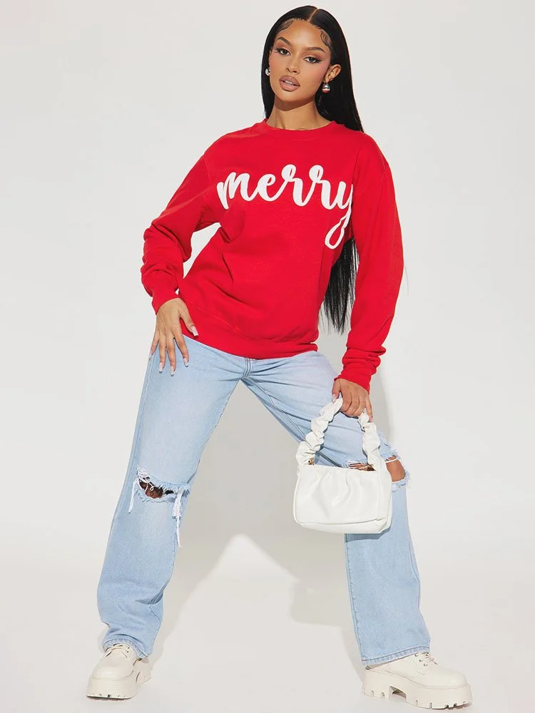 Haz una celebración en estas fiestas con este divertido suéter con estampado gráfico. El estampado Merry llamará la atención en cualquier fiesta o reunión de Navidad. Combínalo con jeans o leggings para conseguir un conjunto sencillo y cómodo que aún tenga mucho estilo de temporada.
