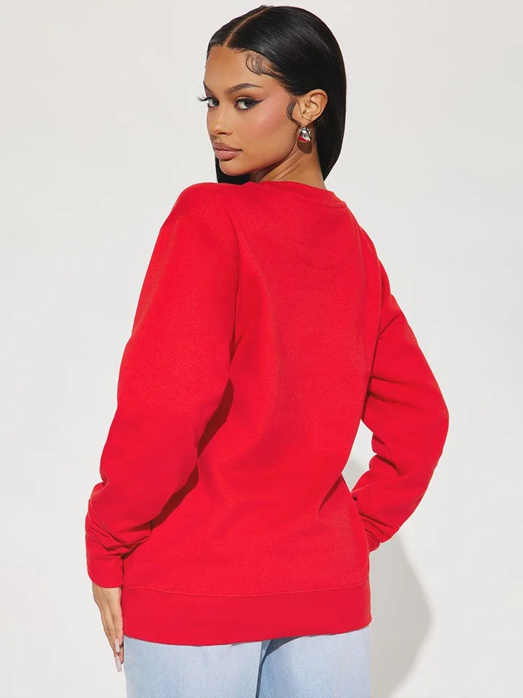 Suéter de manga larga con cuello redondo confeccionado en suave mezcla de algodón y poliéster para mayor comodidad con un estampado divertido y festivo perfecto para las fiestas.