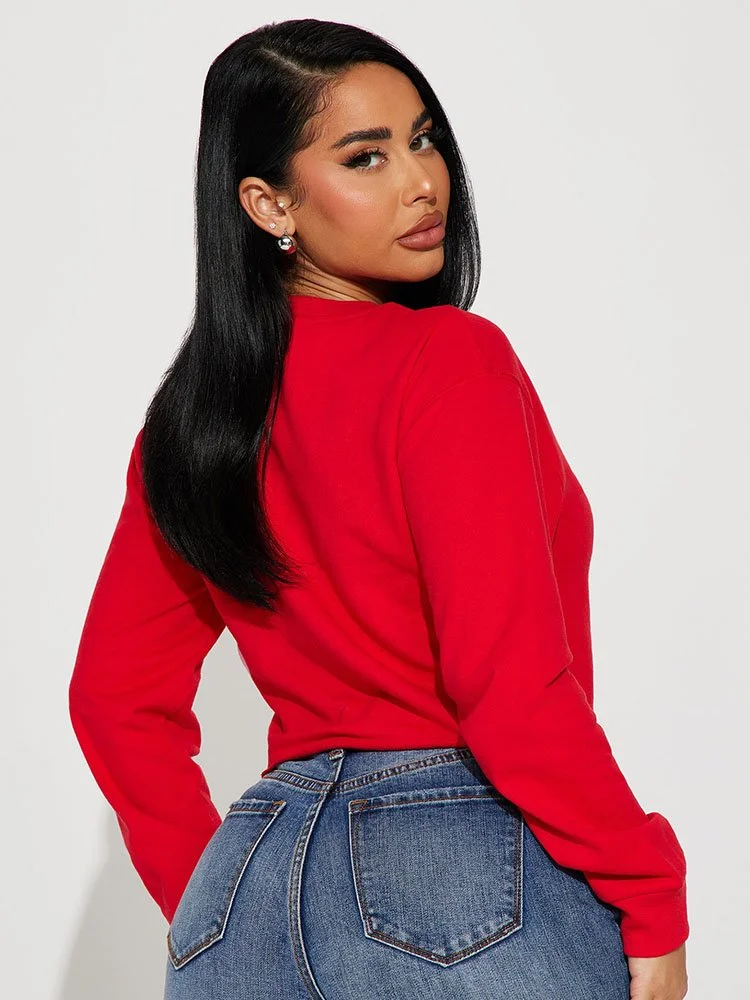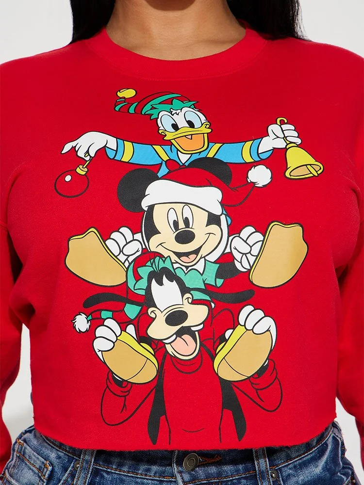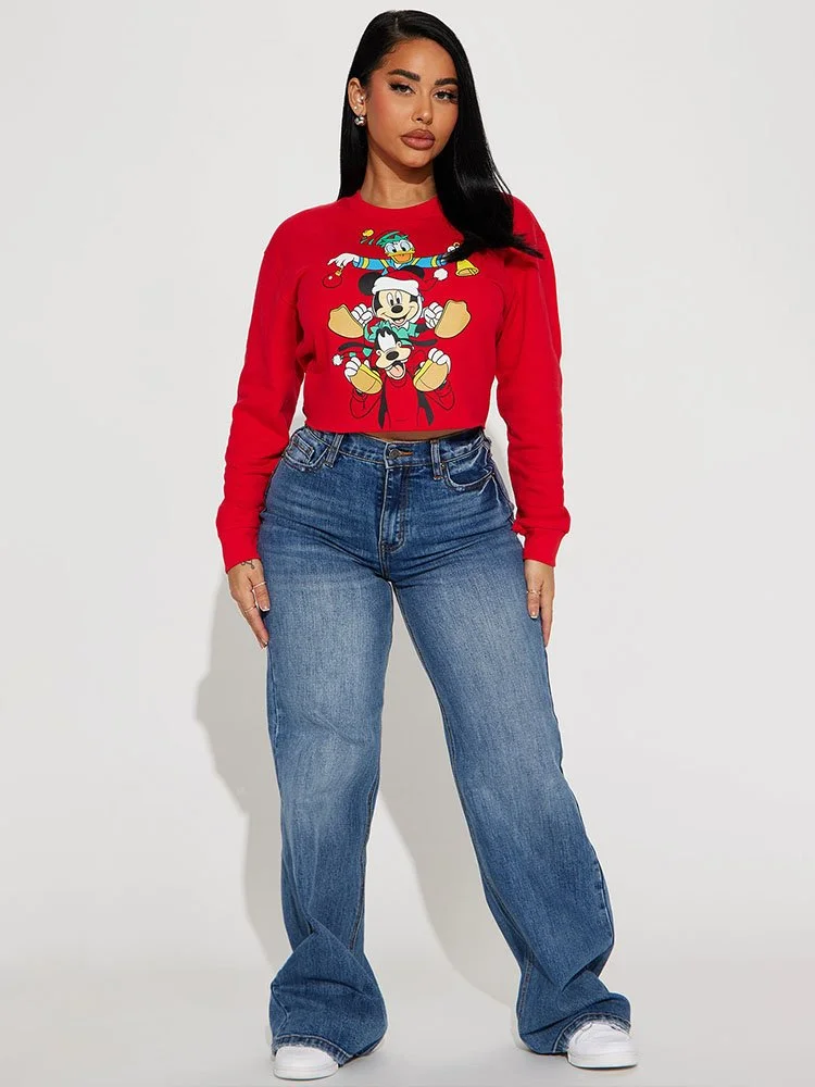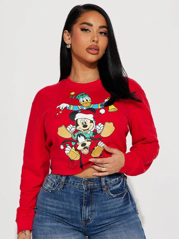 ¡Dale un toque de la magia de Disney a las fiestas con el suéter Fashion Nova Mickeys Holiday With Friends! Este acogedor suéter con cuello redondo presenta una divertida serigrafía de Mickey Mouse celebrando la temporada con todos sus amigos. Es la manera perfecta de sumergirse en el espíritu festivo.