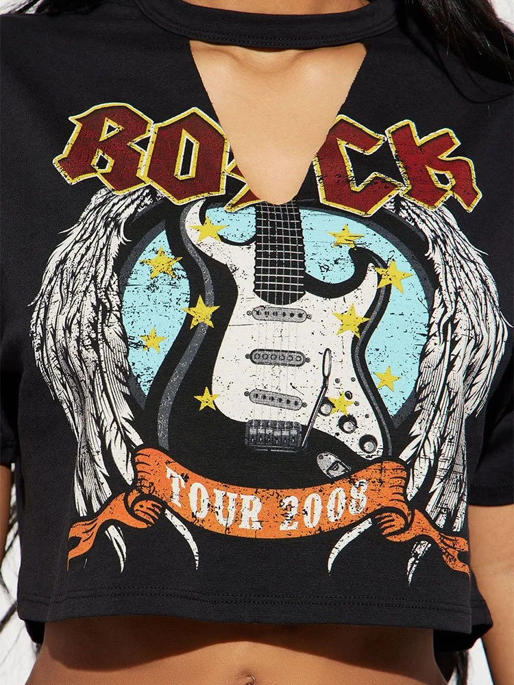 Perfecto para cualquier chica rockera o amante de la música. Combínalo con jeans desgastados o una chaqueta de cuero para completar el look vanguardista. Donde quiera que te lleve tu próximo show, esta t-shirt les permite a todos saber que eres parte de la revolución del rock.