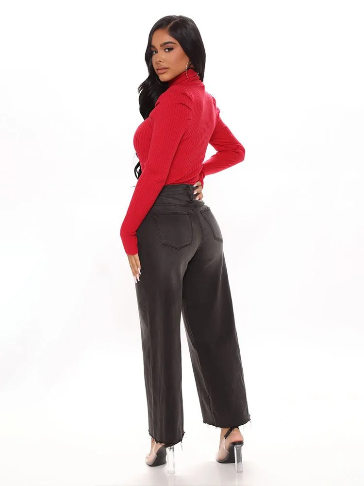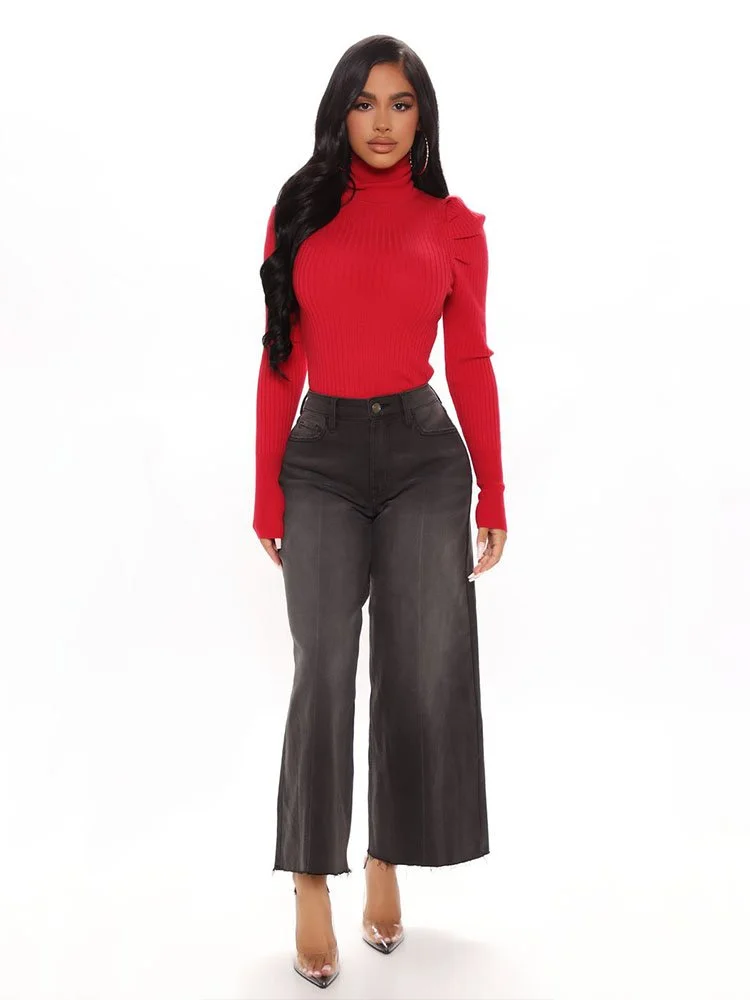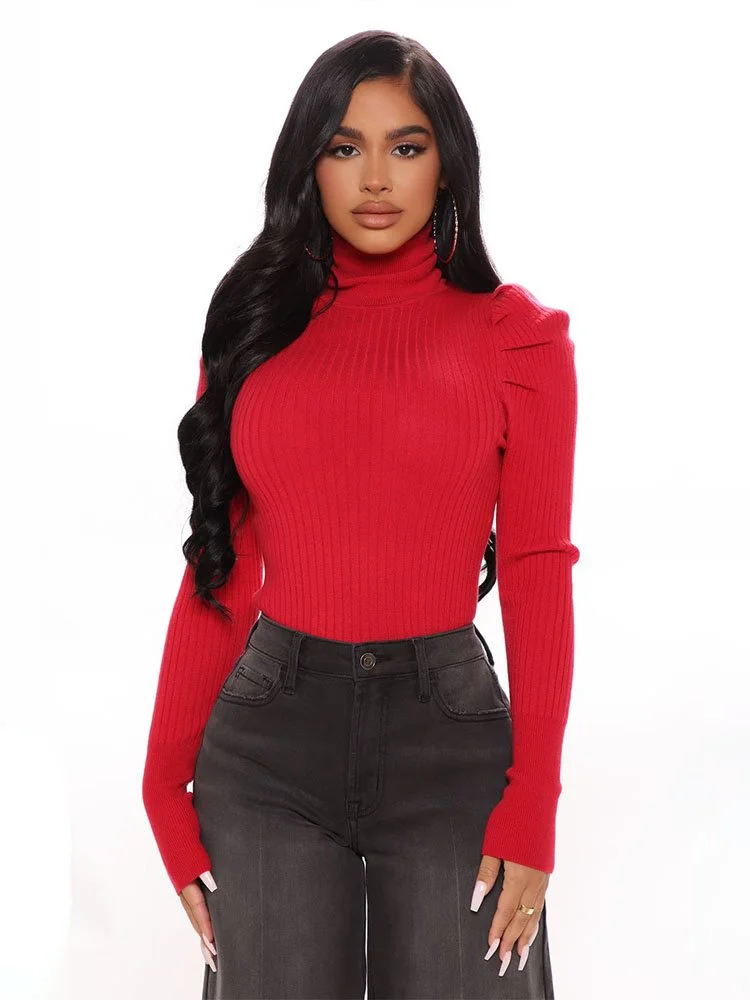 Sweater de manga larga con cuello alto, tejido elástico acanalado y detalle de manga.