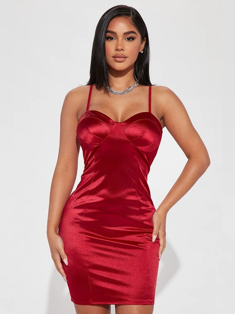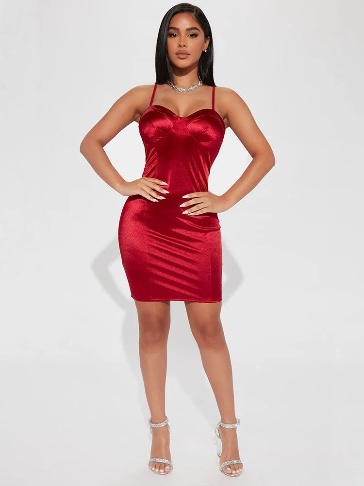 Vestido mini con tirantes finos ajustables, escote corazón y busto con relleno.