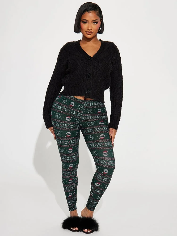 Muestra tu estilo navideño con el divertido estampado navideño y el ajuste favorecedor de estos leggings. La tela de punto súper suave tiene elasticidad para moverse contigo, mientras que la cintura alta favorece tu figura. Combínalo con un suéter de gran tamaño o una túnica para lograr un look lindo y acogedor.