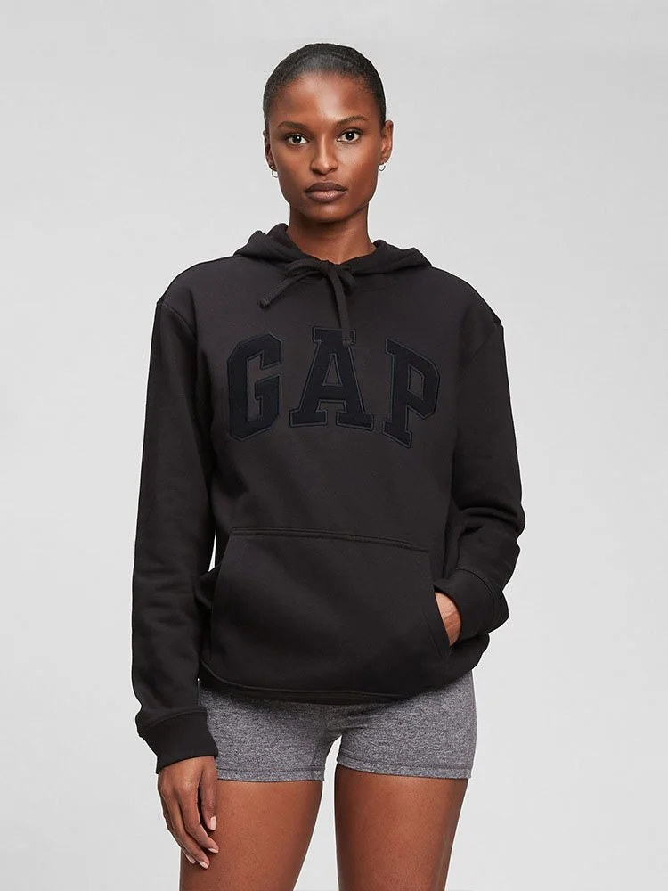 Sweatshirt de mujer de manga larga con puños y dobladillo de canalé, cuello con capucha, bolsillo delantero de tipo canguro. Logotipo frontal de Gap, en aplique. De corte recto y suelto.
