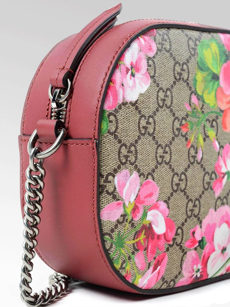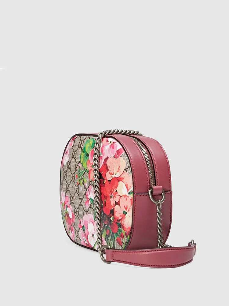 Un bolso compacto tipo bandolera de cadena, elaborada en lona GG. Modelo especial Supreme. El estampado floral ahora enriquece este bolso con una naturaleza romántica, apareciendo como un estampado multicolor sobre el motivo GG.