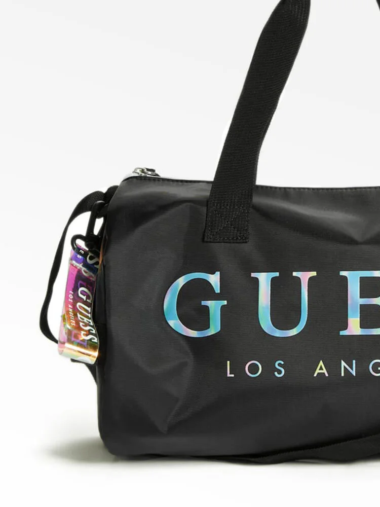 El mejor compañero de viaje o de gimnasio, esta bolsa de deporte cuenta con el logotipo de estilo iridiscente y una correa cruzada desmontable.