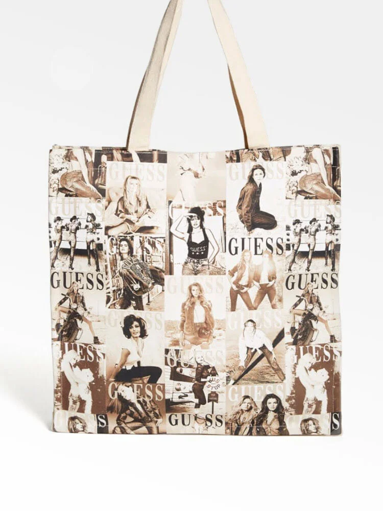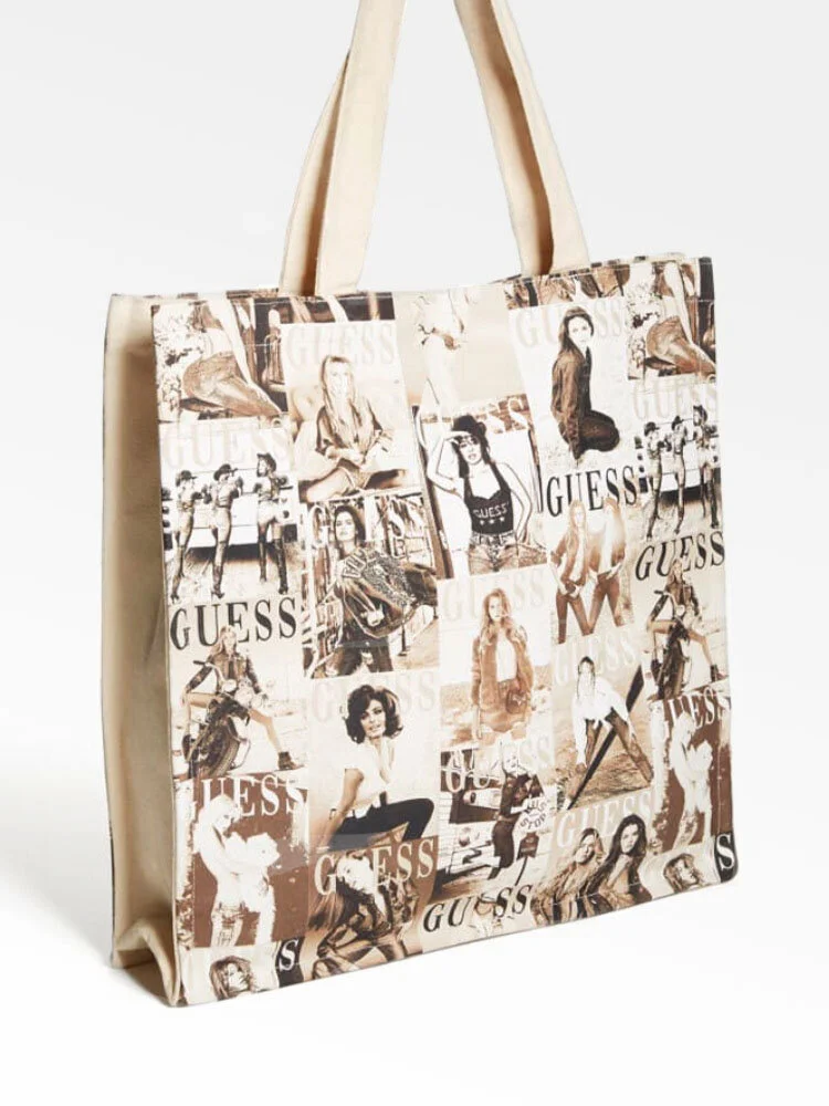 Bolso shopper con exterior de algodón y estampado por toda la superficie.