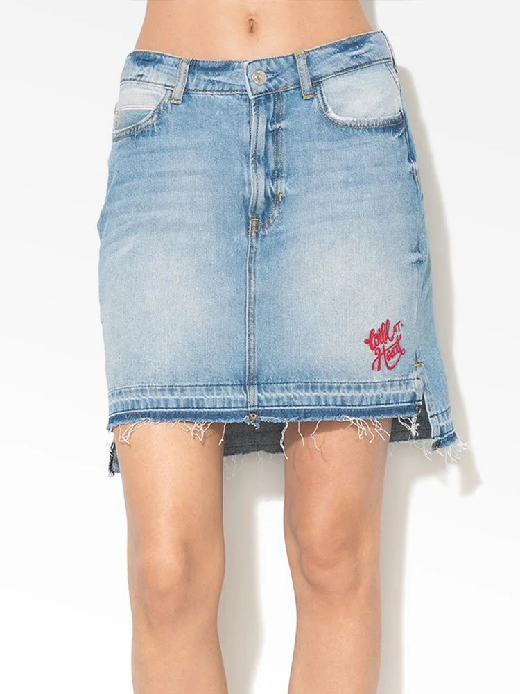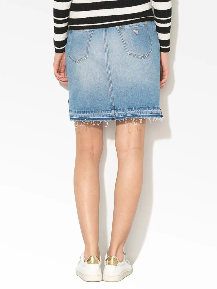 Mejora tu armario hoy con esta falda de jean imprescindible de la marca Guess.