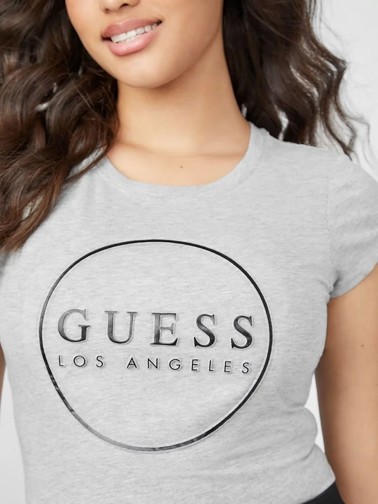 Esta moderna T-Shirt de Guess de modelo ajustado presenta un logotipo en relieve, cuello redondo y mangas cortas.