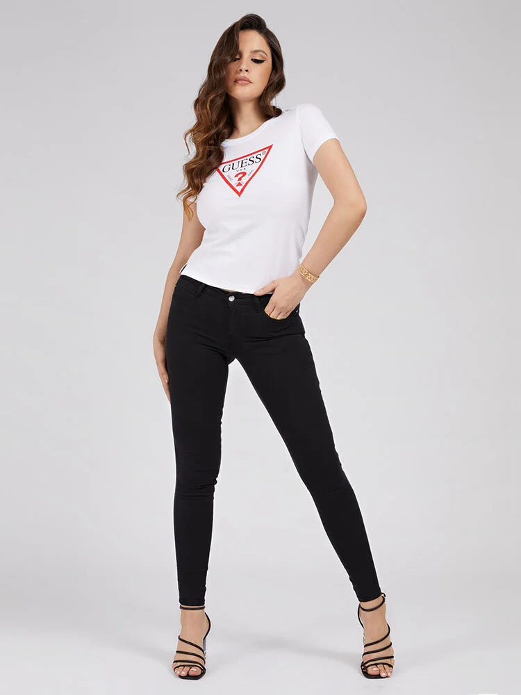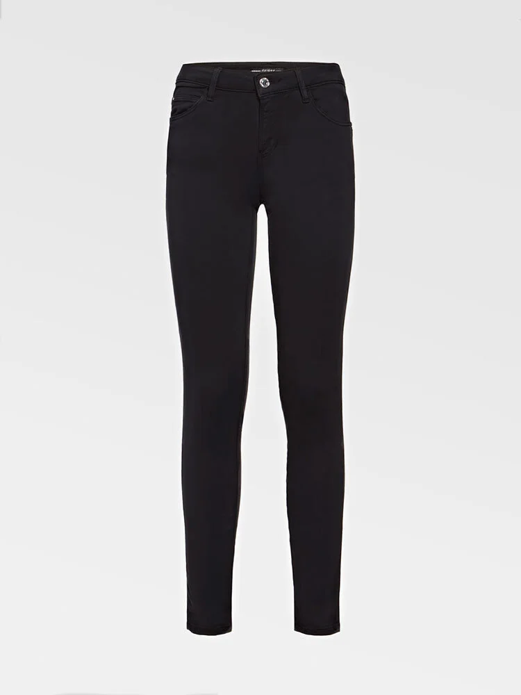Jeans de mezcla de algodón con efecto moldeador. Talle medio, pernera y bajo skinny. Modelo 5 bolsillos.